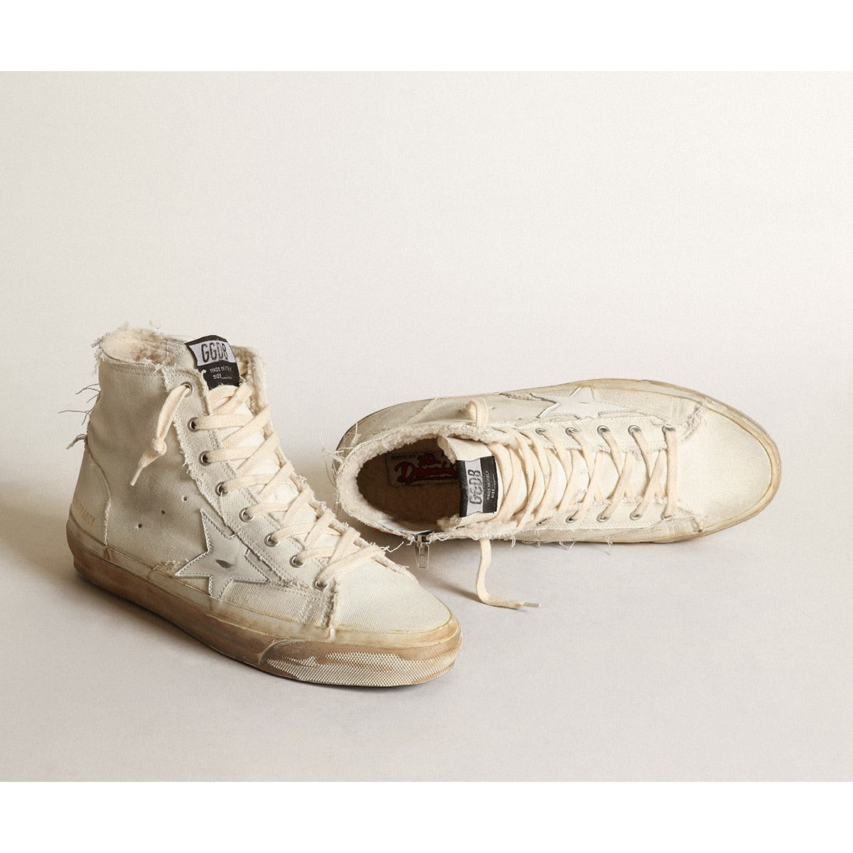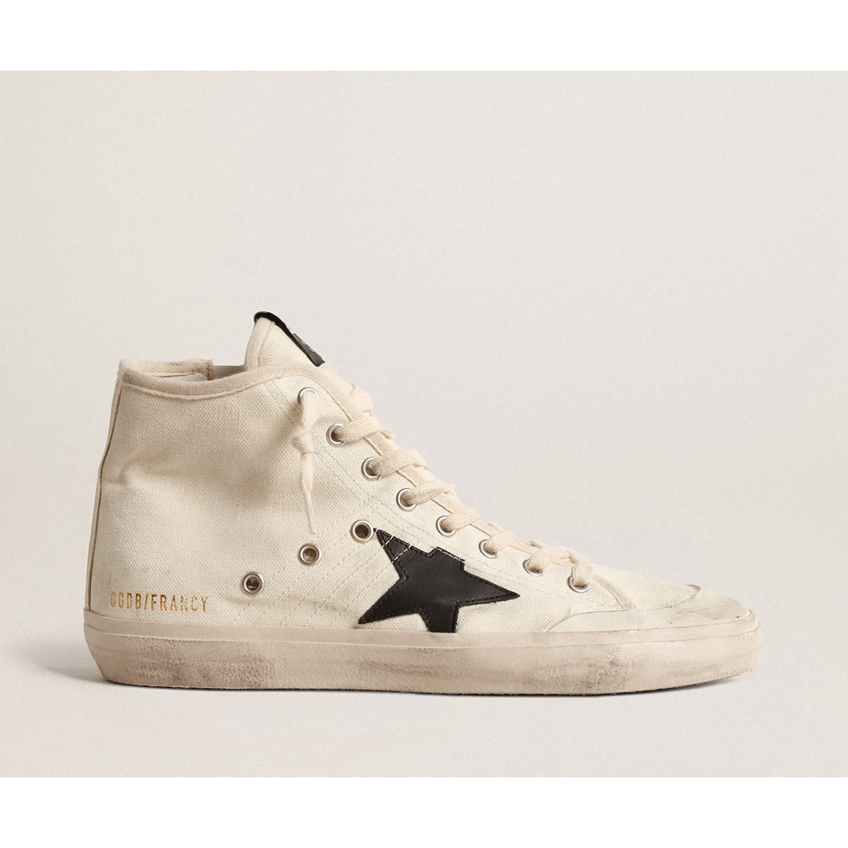 Golden Goose Francy Turnschuhe in Elfenbein Canvas mit weißem Leder Star GMF00337.f003448.15385