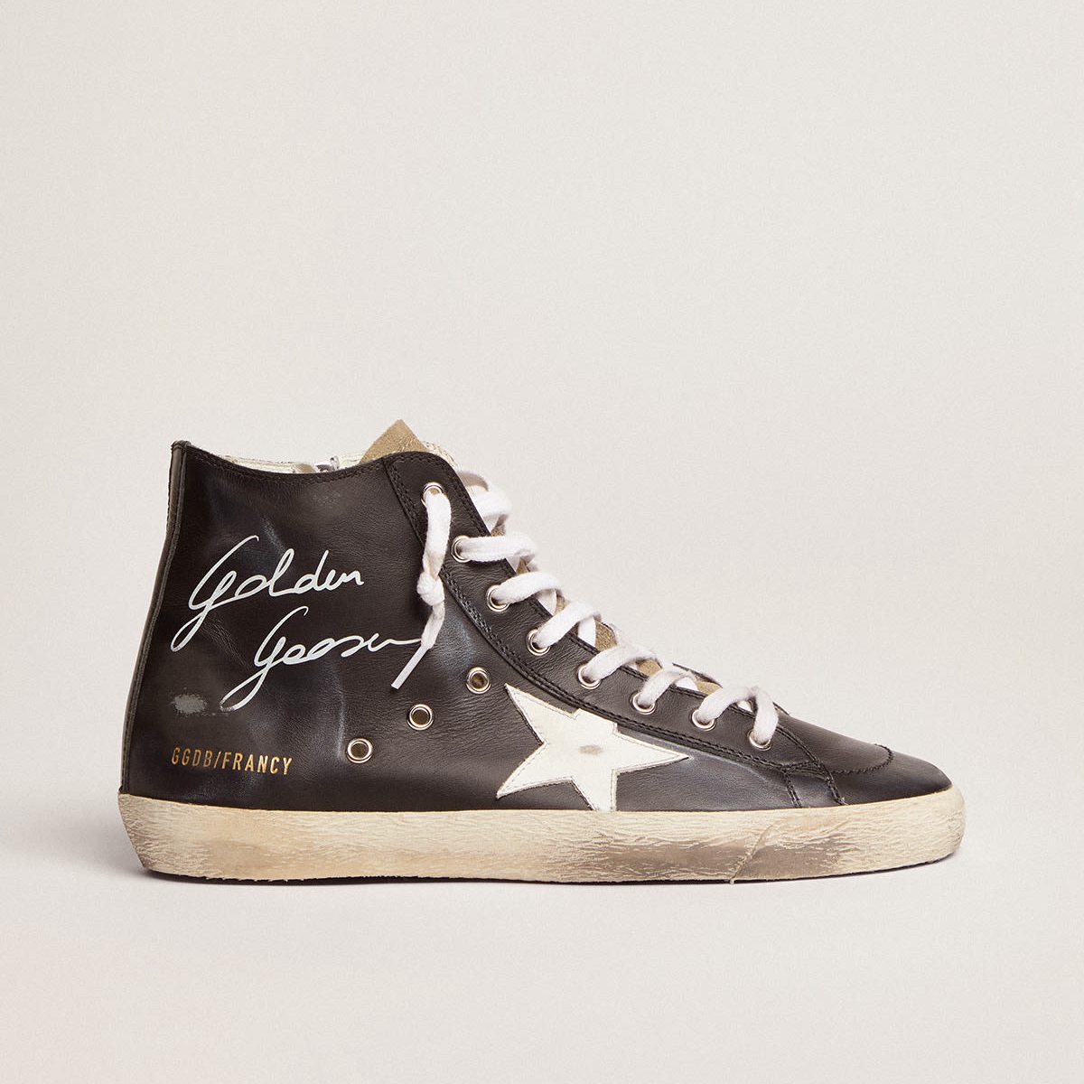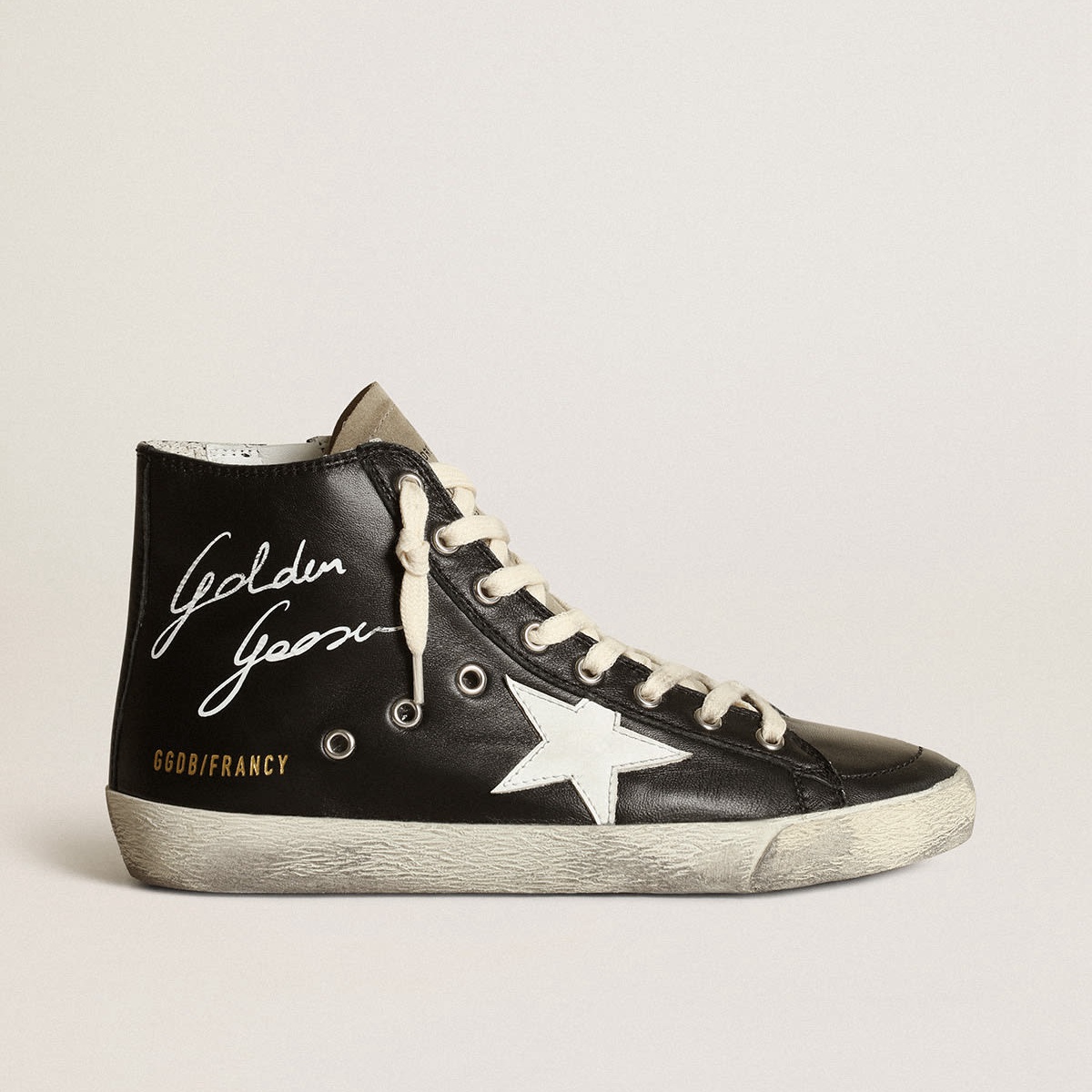Golden Goose Francy Turnschuhe mit schwarzem Leder Upper und weißer Lederstar GWF00113.F002783.90313