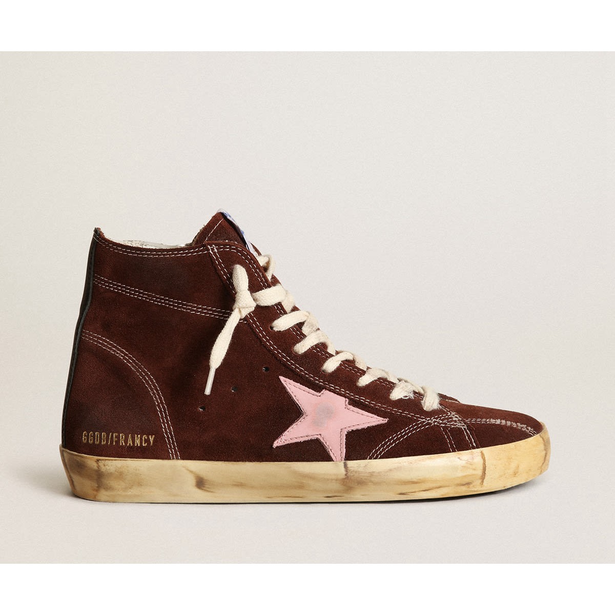Golden Goose Francy Turnschuhe im braunen Wildleder mit rosa Lederstern und schwarzer Nappa Lederferse Tab GWF00113.f003410.55495