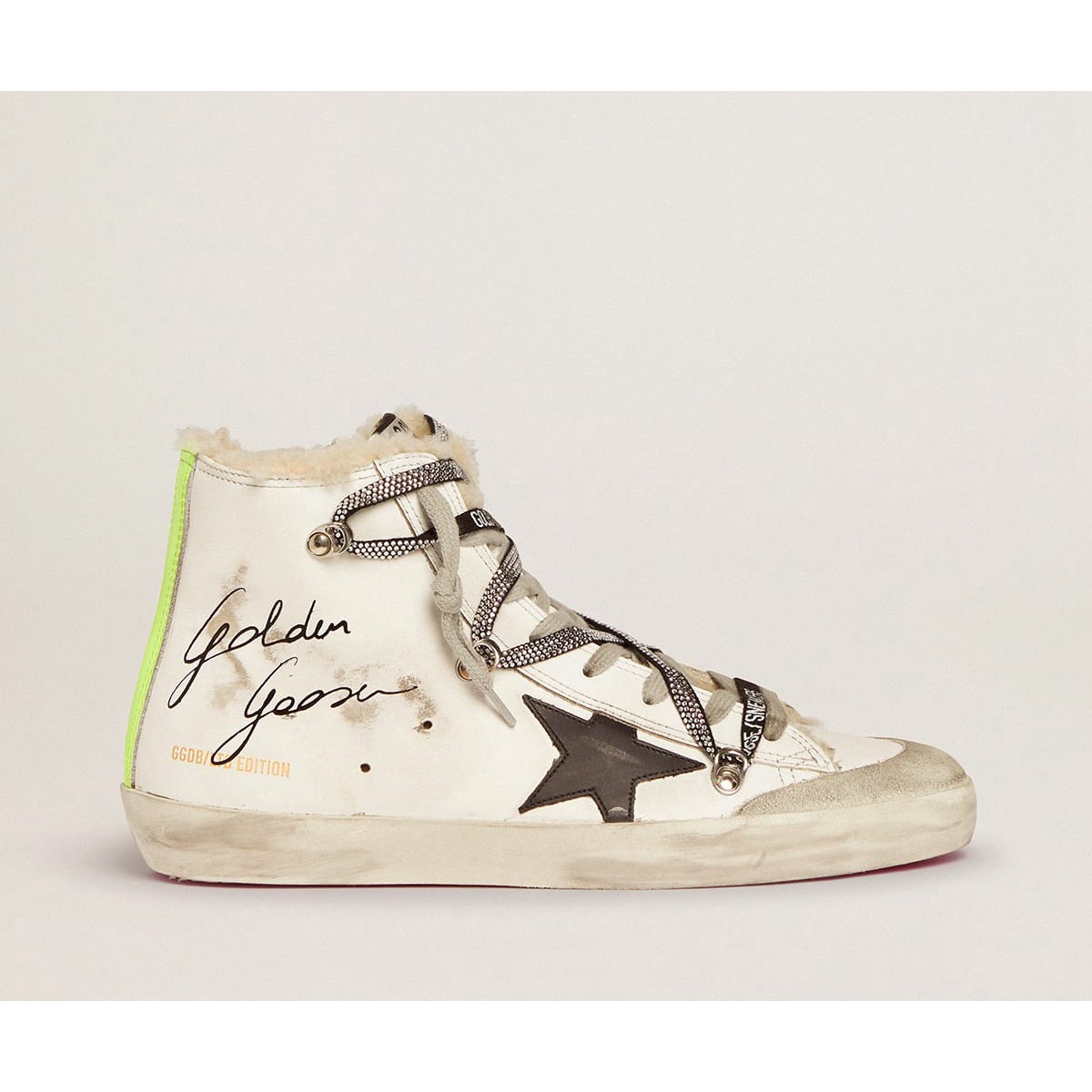 Golden Goose Francy Turnschuhe Penstar Lab mit Shearling Einsätzen und schwarzem Stern GWF00114.F002427.80673