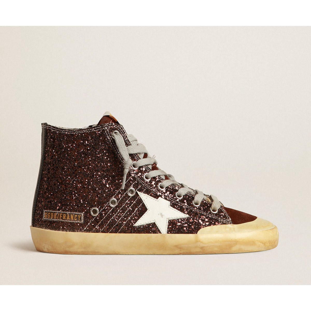 Golden Goose Francy Turnschuhe Penstar im braunen Glitzer mit weißem Lederstar GWF00114.F004048.55520
