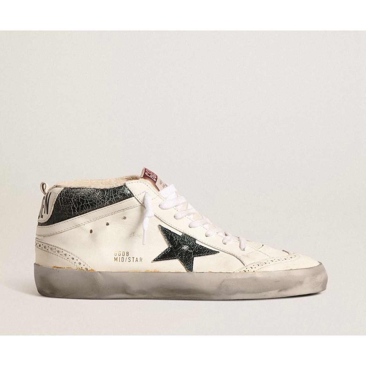 Golden Goose Mid Star Turnschuhe mit grünem metallischem Lederstern und weißem Flash GMF00123.f004532.11488