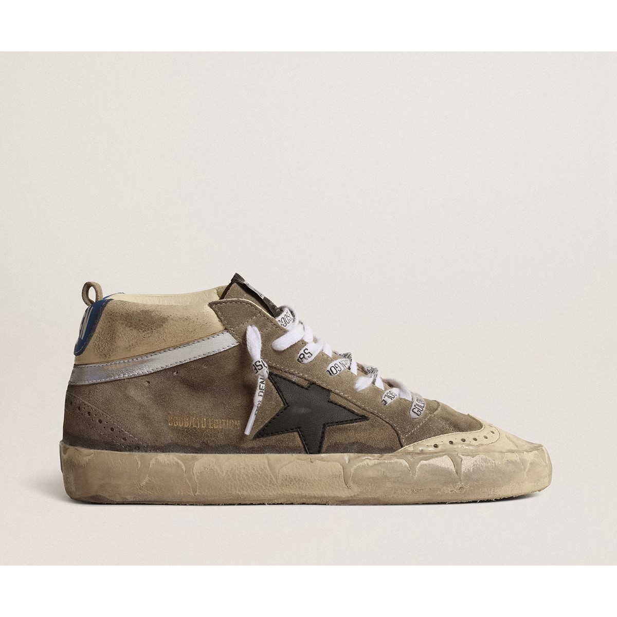 Golden Goose Mid Star Turnschuhe mit hellgrauem Wildlederstern und Chromeffekt Gold Leder Flash GMF00123.f003018.11116