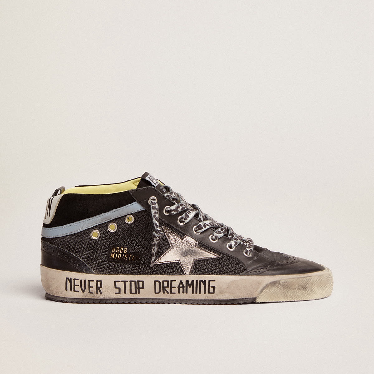 Golden Goose Mid Star Ltd Turnschuhe in schwarzem Leder und Maschen mit dunkelgrauem Metallic Leder Star GMF00123.F002644.90310