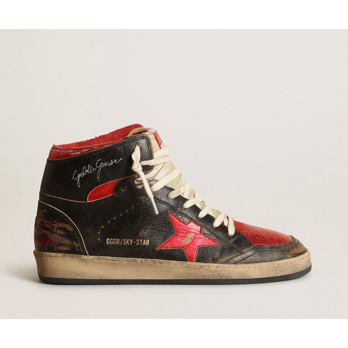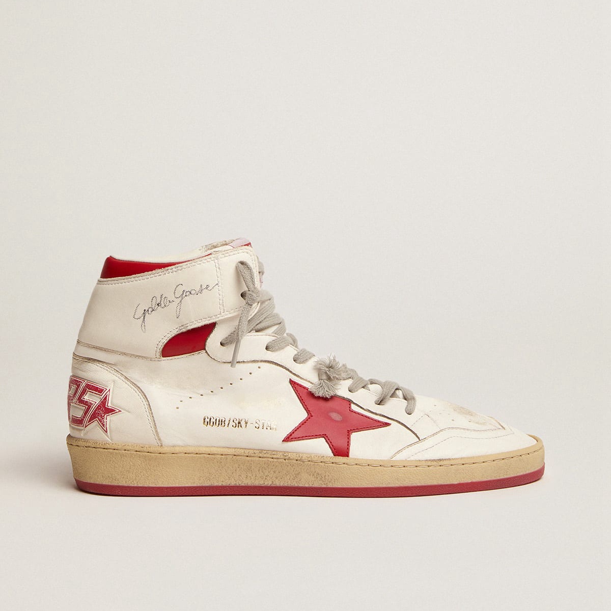 Golden Goose Sky-Star-Turnschuhe mit Signatur am Knöchel- und roten Ledereinsätzen GMF00230.f002190.10350