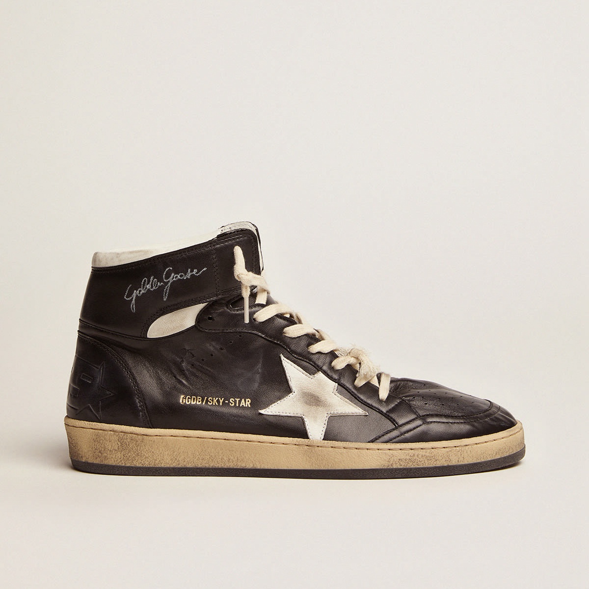 Golden Goose Sky-Star-Turnschuhe mit Signatur am Knöchel und schwarzen Ledereinsätzen GWF00230.f002190.10283