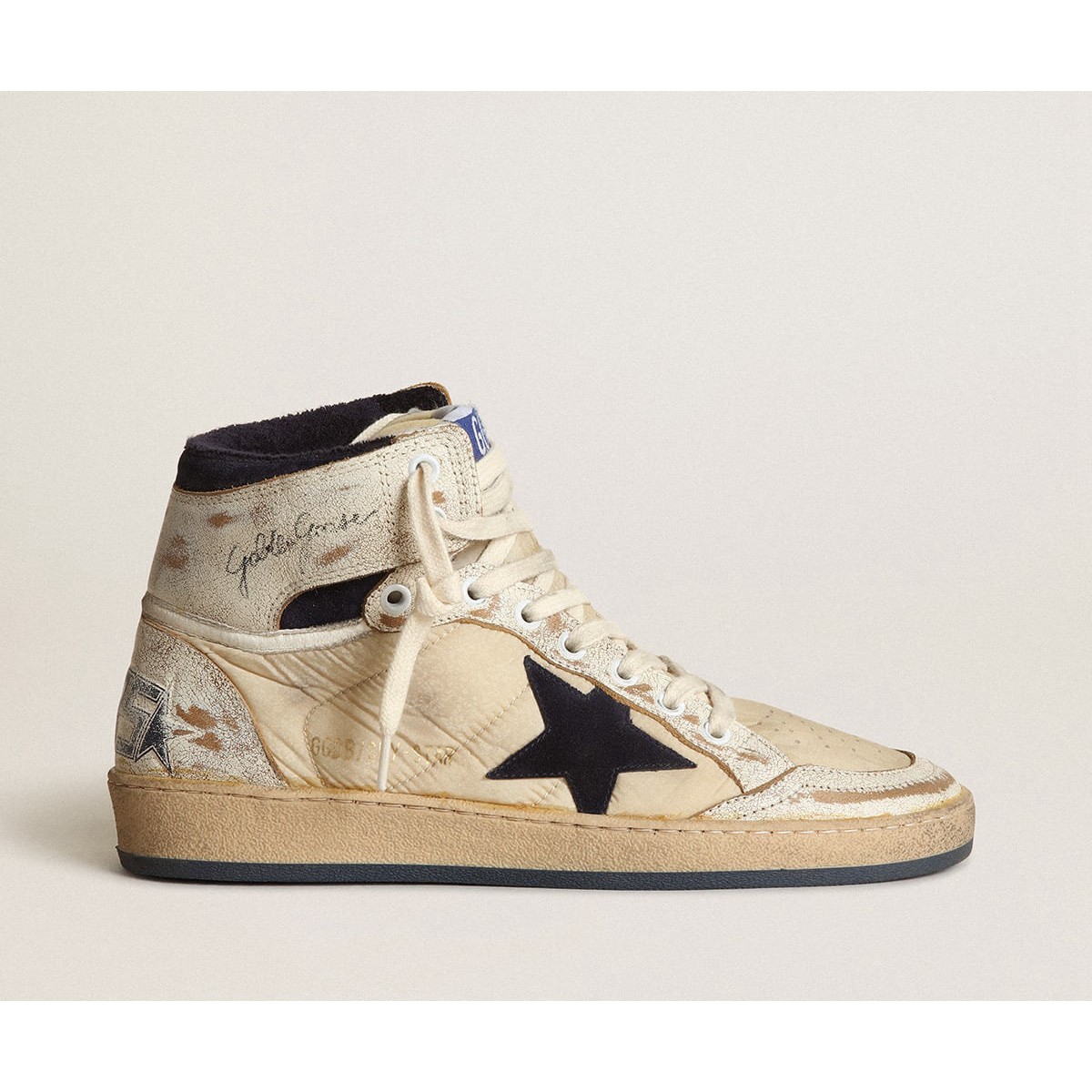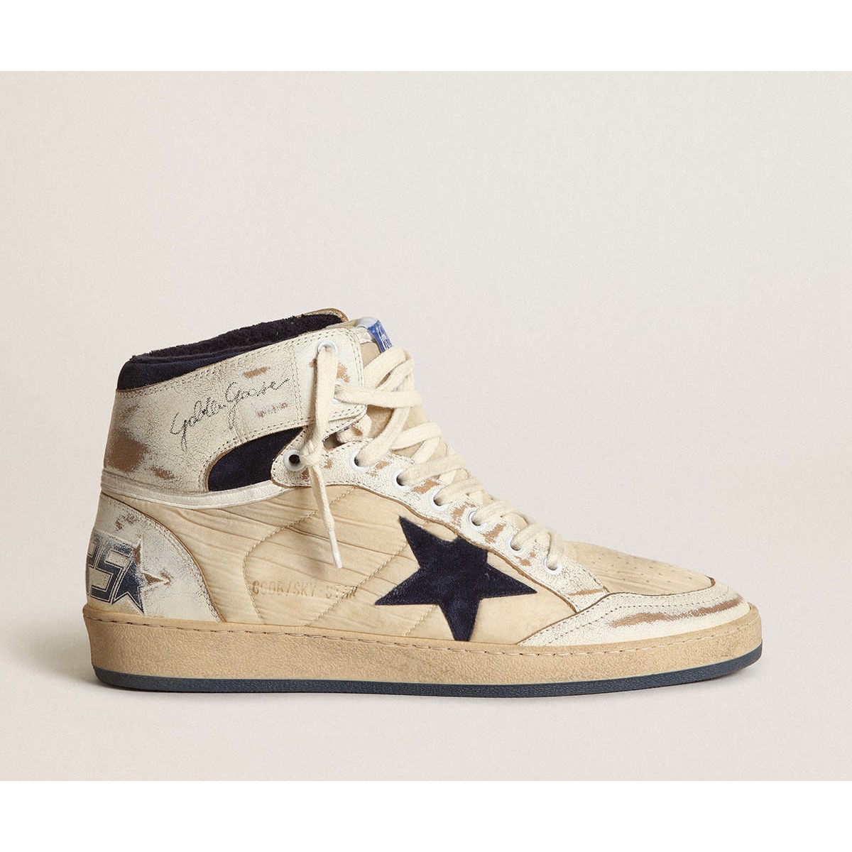 Golden Goose Sky-Star-Turnschuhe in cremefarbenem Nylon und weißem Leder mit dunkelblauem Wildleder Star GMF00230.f003339.10357
