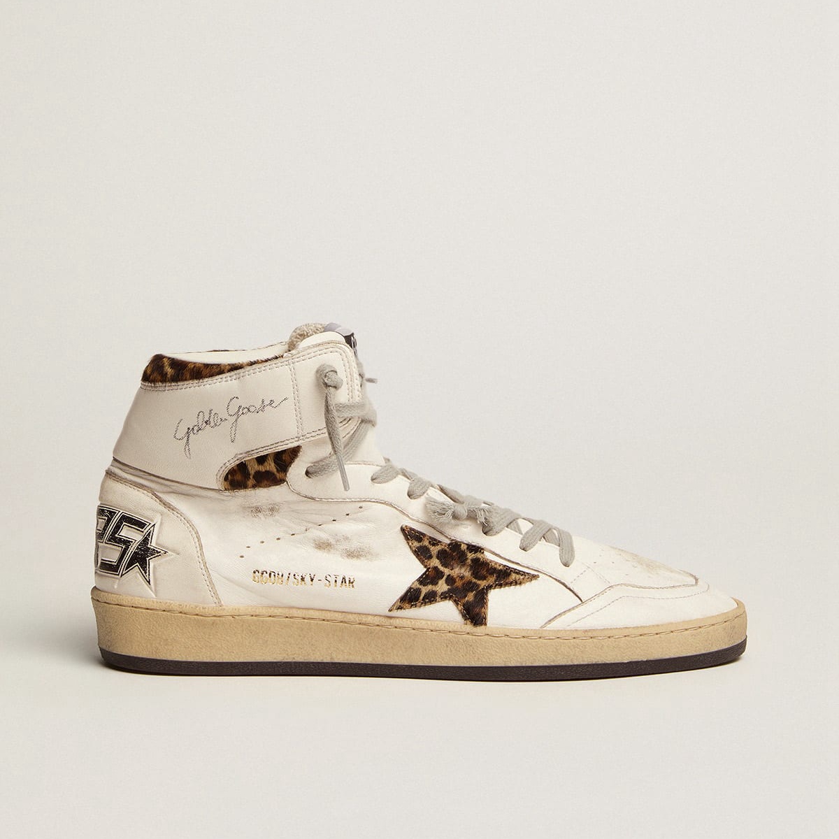 Golden Goose Sky-Star-Turnschuhe mit Signatur am Knöchel- und Leoparden-Print-Pony-Hauteinsätze GWF00230.f002193.10805