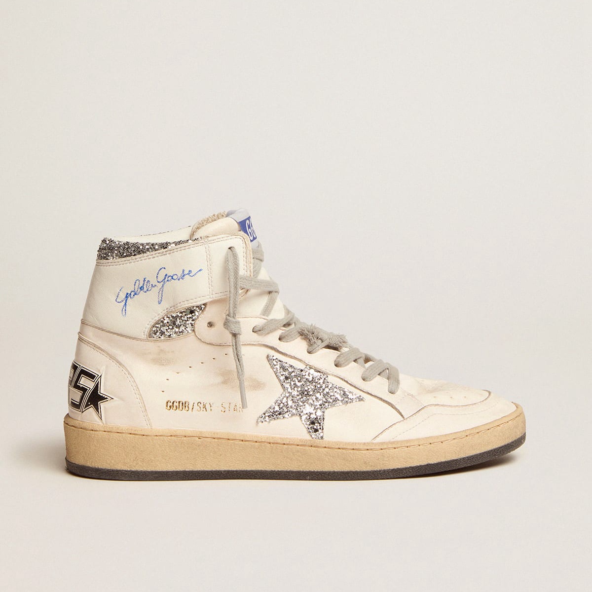 Golden Goose Sky-Star-Turnschuhe mit Signatur am Knöchel- und Silberglitter-Einsätze GWF00230.f002192.80185