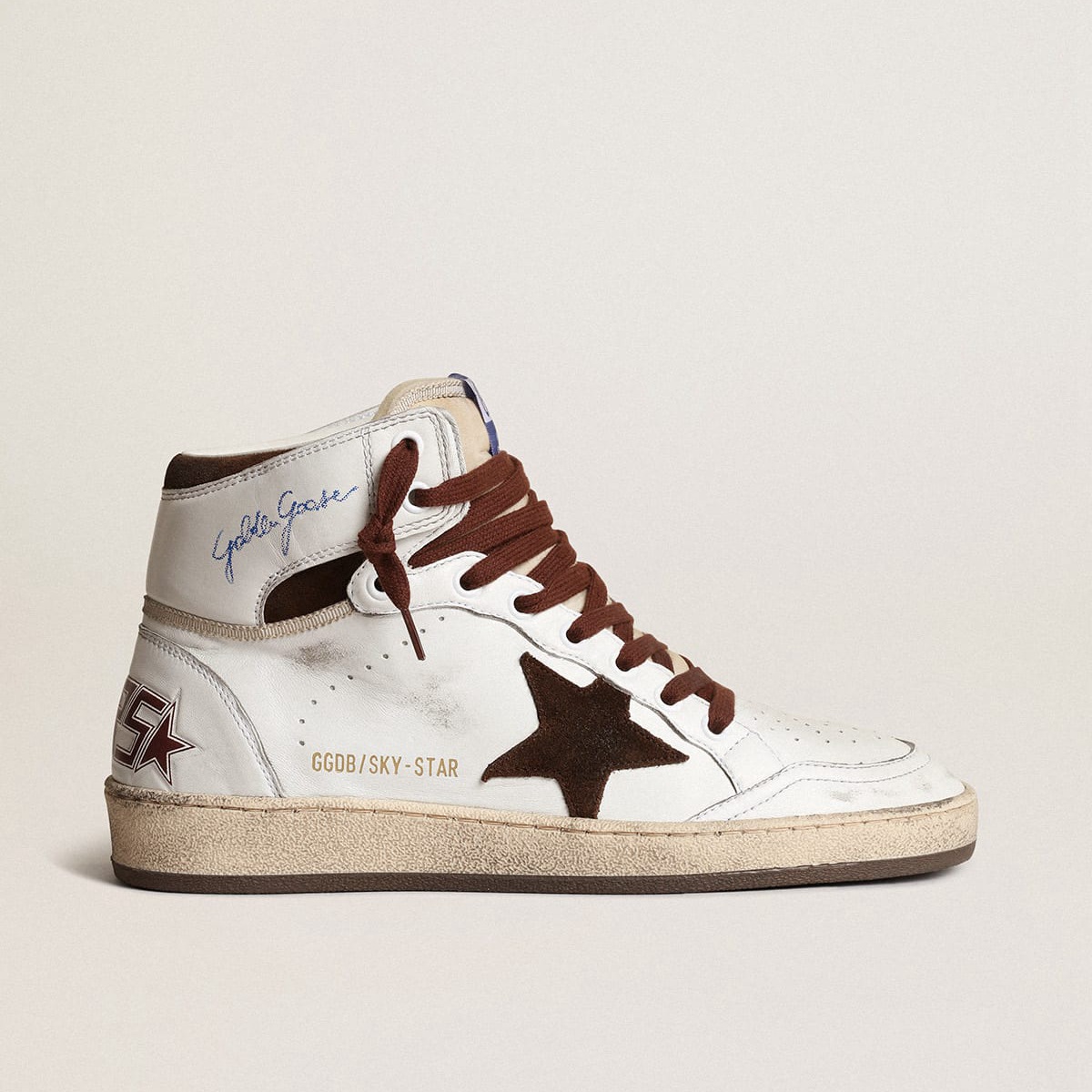 Golden Gans Sky-Star in weißem Nappa-Leder mit Schokoladen Wildlederstar GWF00230.f004005.11362