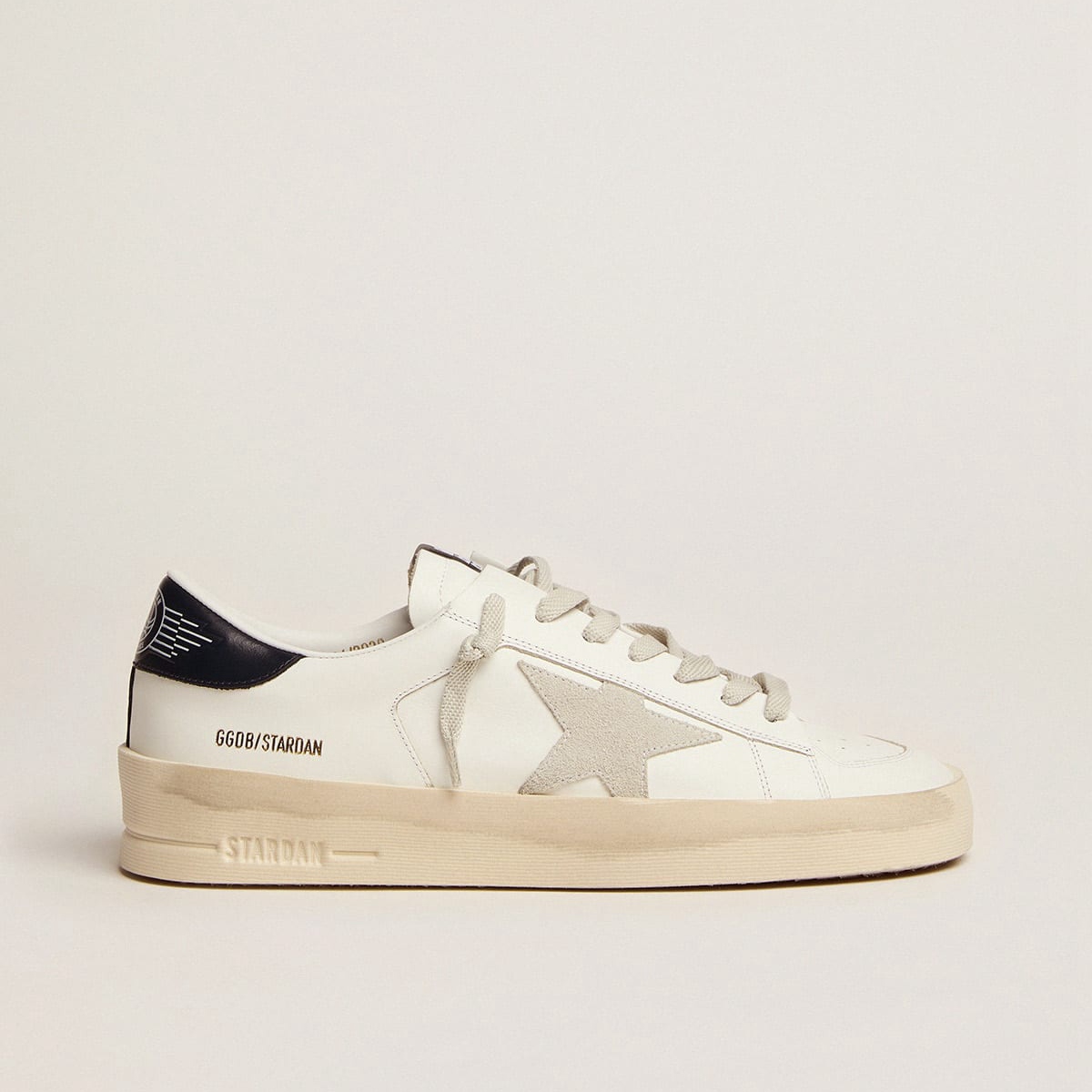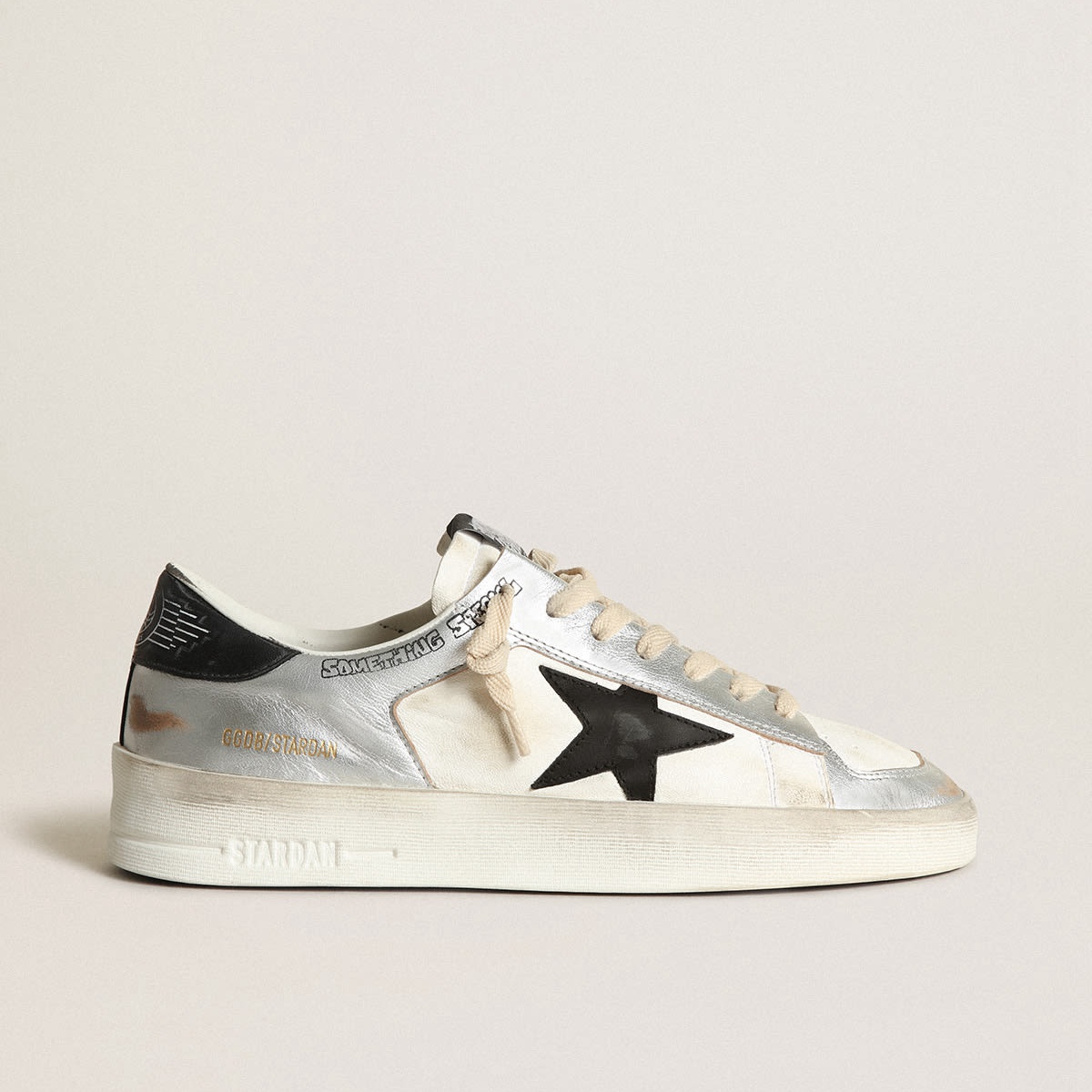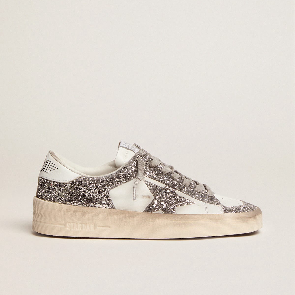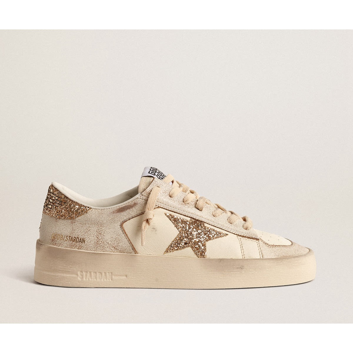 Golden Goose Stardan in Ecru Nappa Leder mit Gold Glitterstar und Ferse Tab GWF00128.f004550.11490