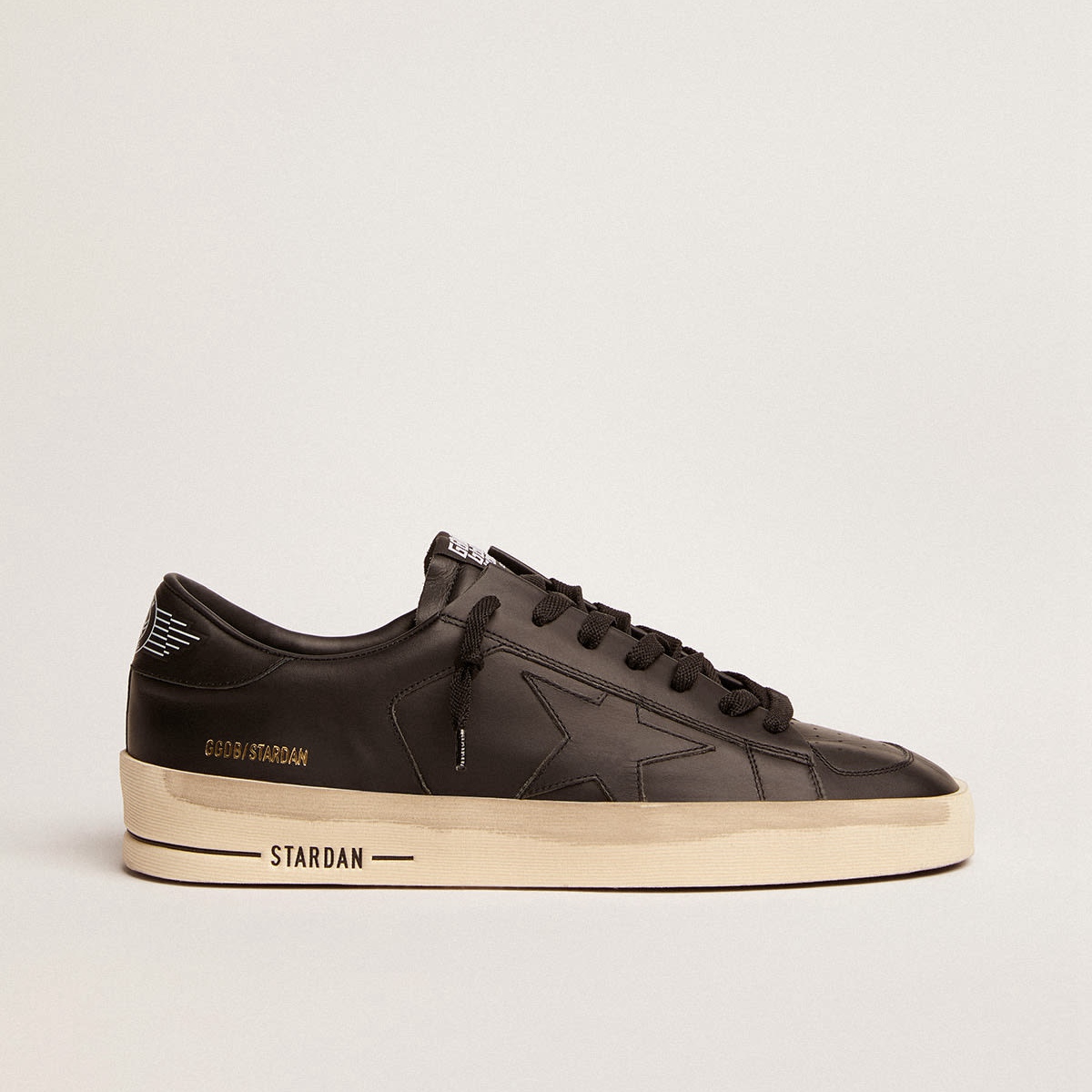Golden Gans Stardan Turnschuhe in insgesamt schwarzem Leder mit Vintage Finish GMF00128.F000860.90100