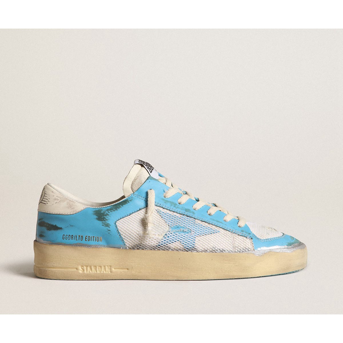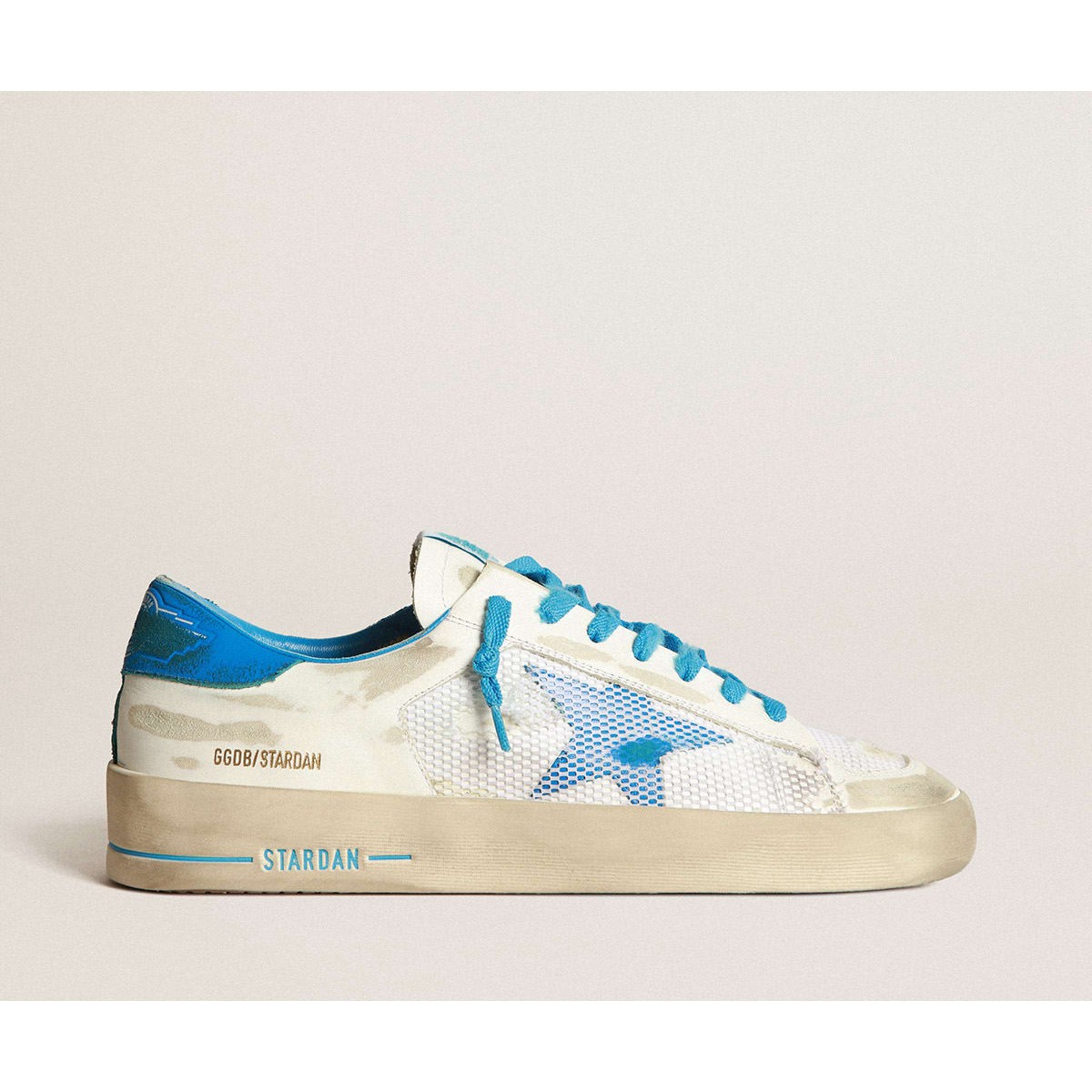 Golden Goose Stardan Turnschuhe Lab in hellblaues Nappa Leder und weißes Netz GWF00370.f004374.50492