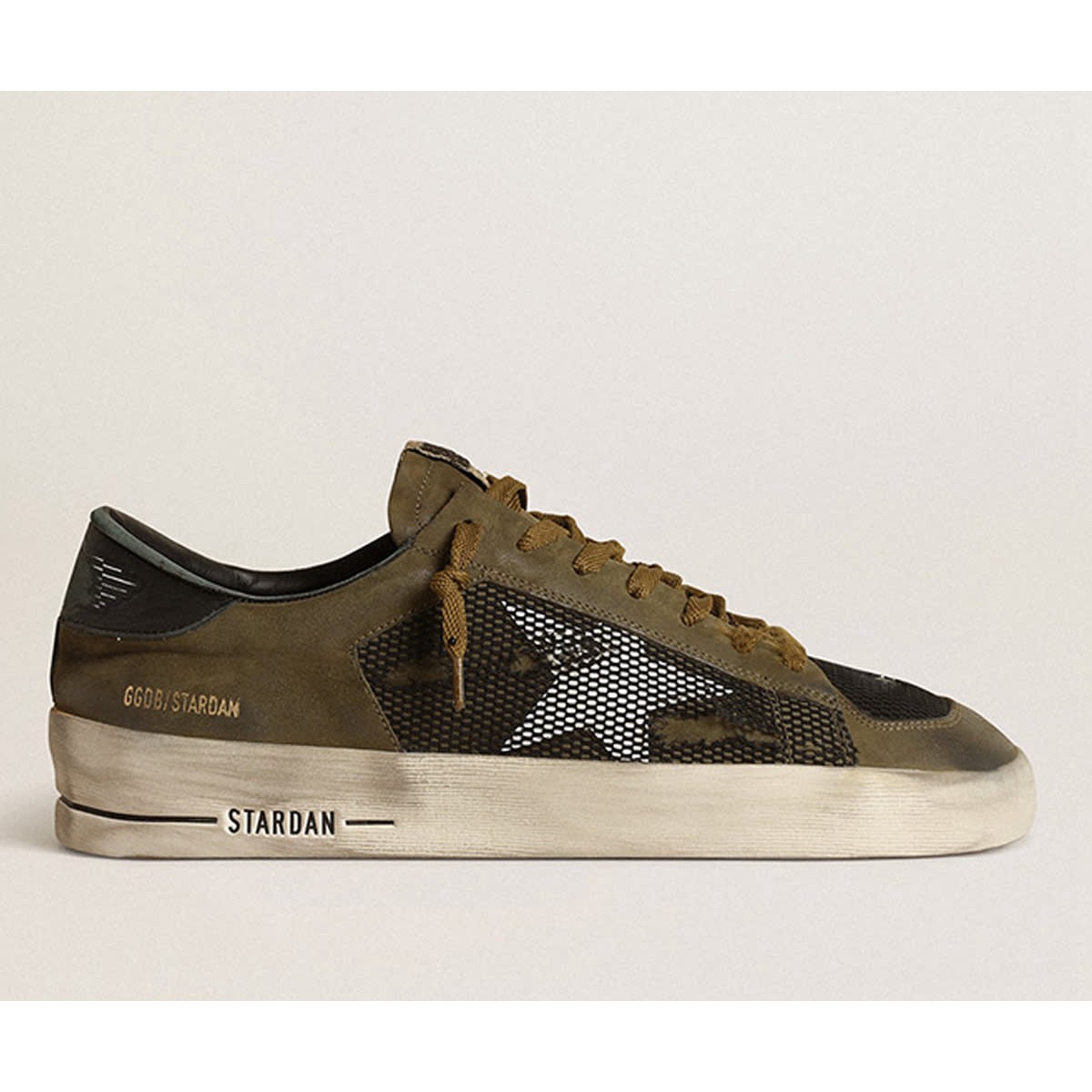 Golden Goose Stardan Turnschuhe in militärischem Nubuck und schwarzem Netz mit weißem Lederstar GMF00370.f003776.81934
