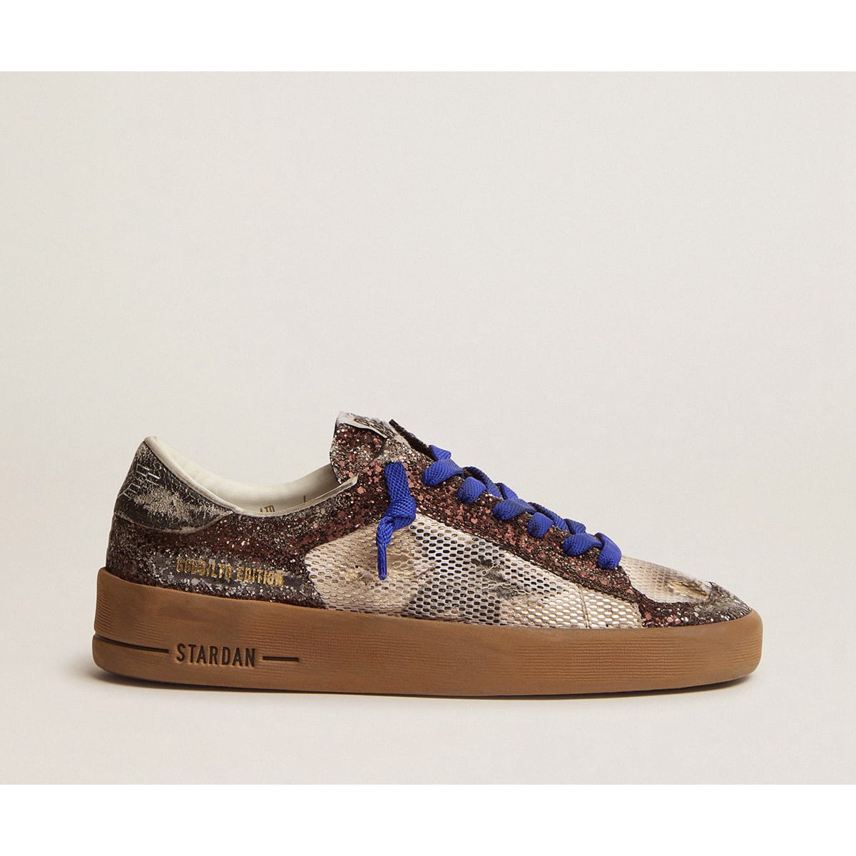 Golden Goose Stardan Turnschuhe Lab mit braunem Glitzer Obermaterial und schwarzem Stern GWF00128.F002382.81437