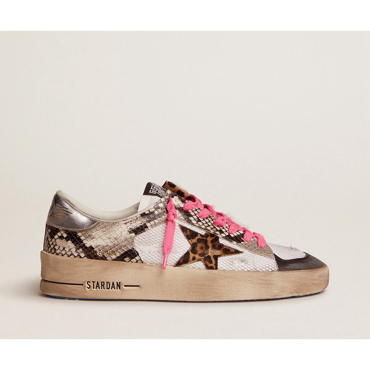 Golden Goose Stardan Turnschuhe Labor mit Leder Upper und Leoparden-Print Pony Skin Star GWF00128.f002364.81428