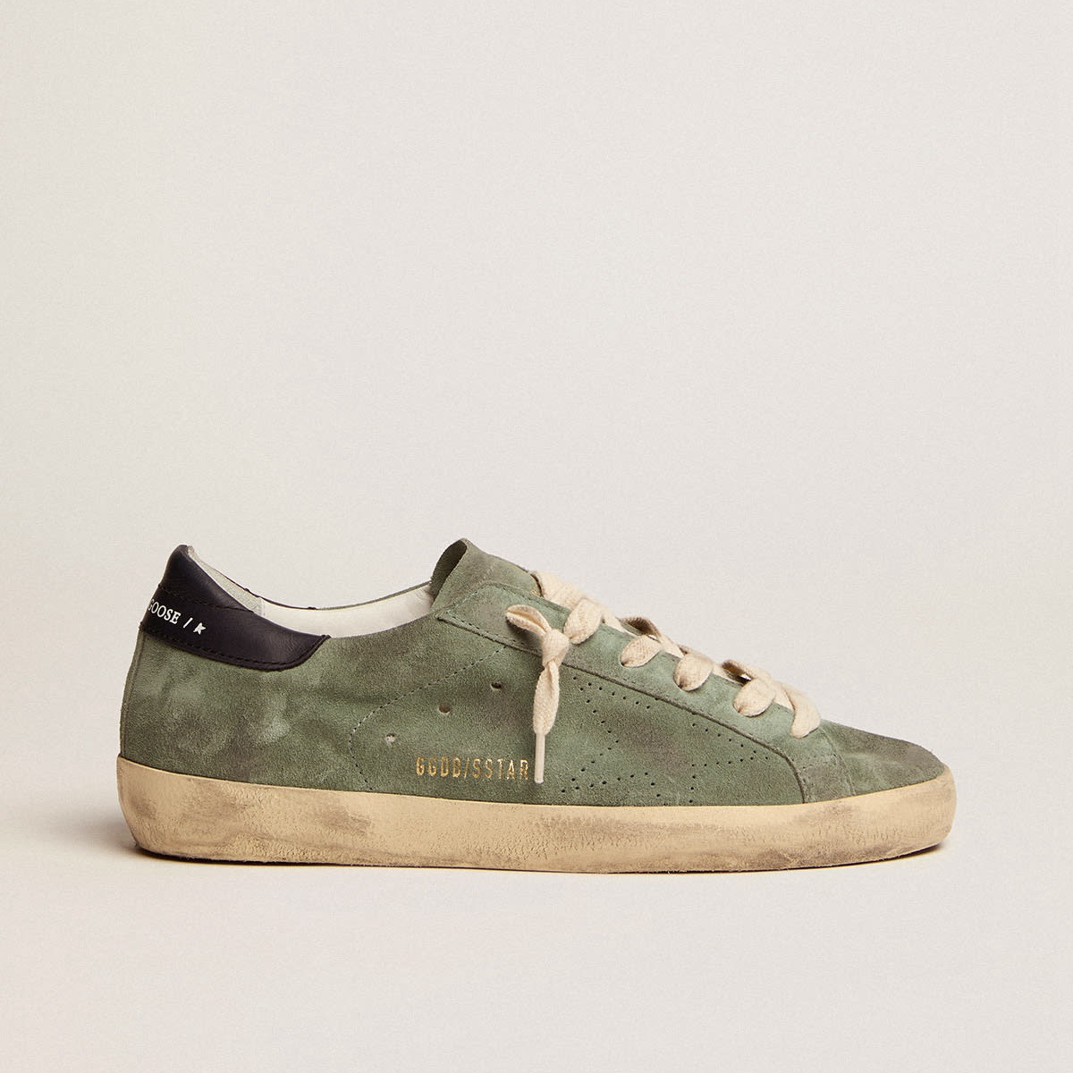 Super-Star-Turnschuhe goldener Gans im militärischen Wildleder mit perforiertem Stern und dunkelblauer Lederabsatz GWF00105.f002708.35783