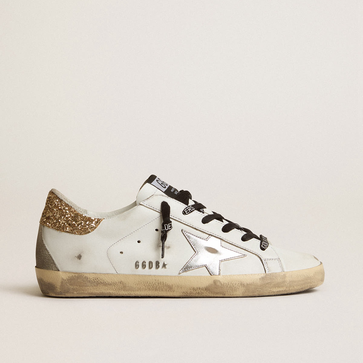 Golden Goose White Leder Super-Star-Turnschuhe mit glitzernder Absatz Tab GWF00102.f001460.10593