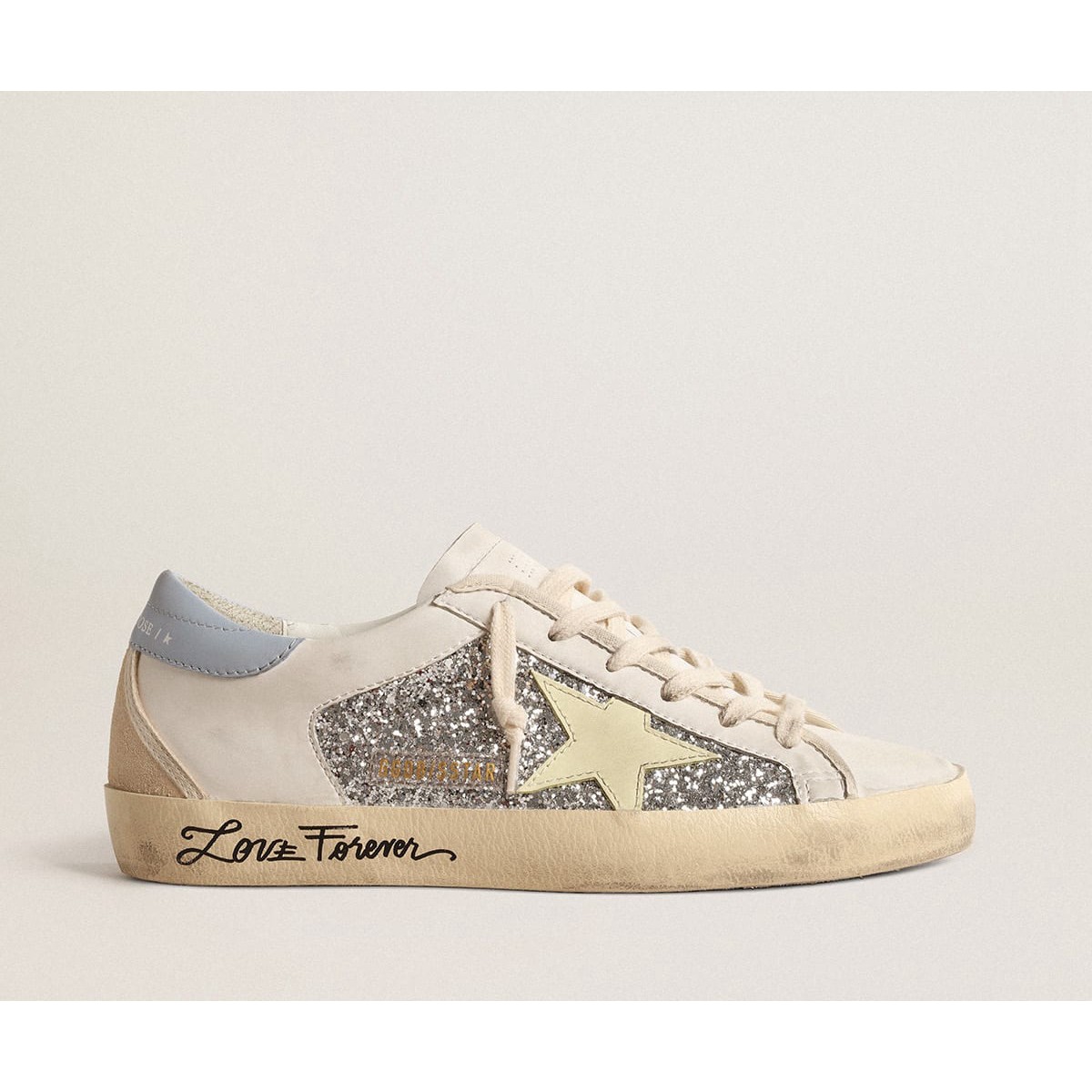 Golden Goose Super-Star mit Gold Glitterstar und Eisgrau Wildledereinsätzen GWF00102.F0046644.10417