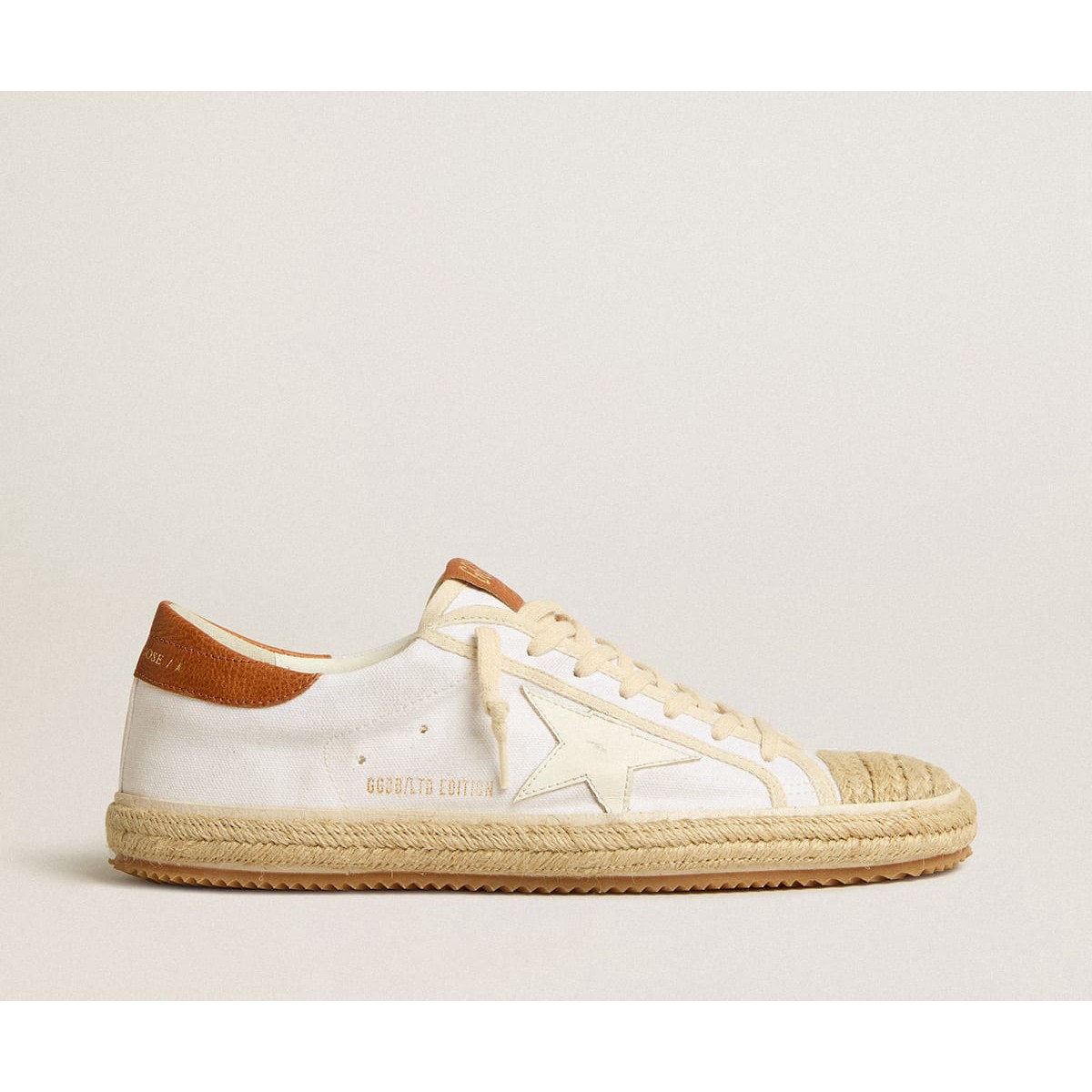 Golden Goose Super-Star Turnschuhe Ltd in Leinwand mit weißem Lederstern und Raffia Toe GMF00101.f005083.11621