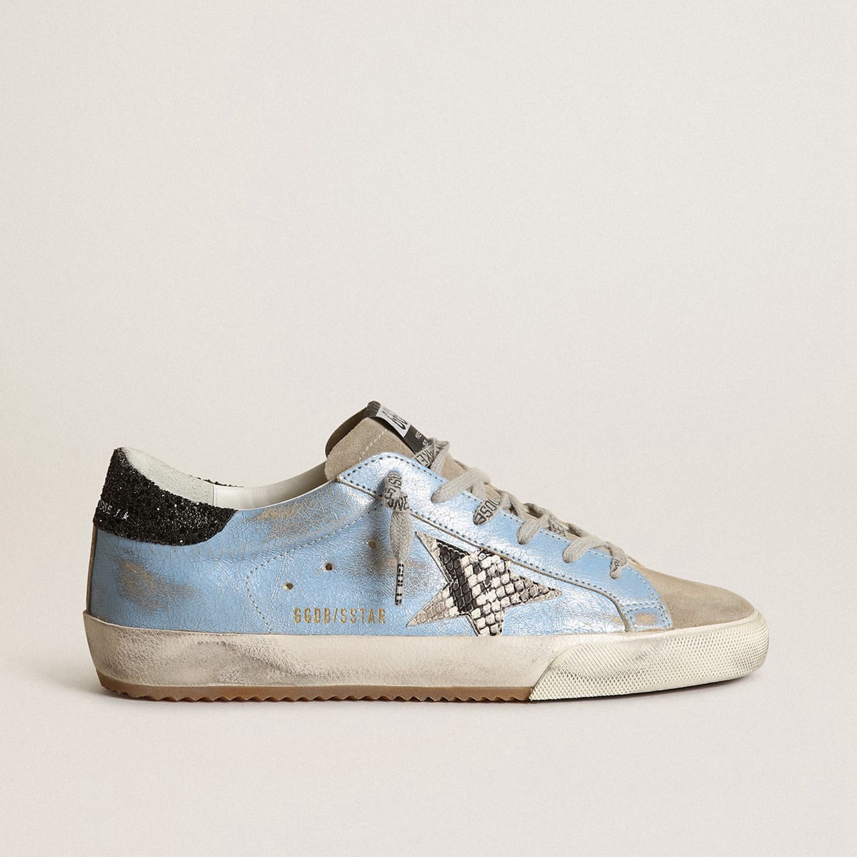Golden Goose Hell Blue Super-Star mit einem grauen Stern und Glitzerabsatz Tab GWF00101.f003406.50712