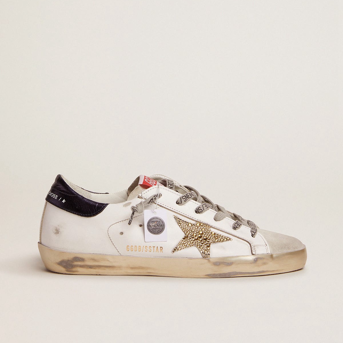 Golden Goose Super-Star Ltd Turnschuhe mit blauer Fersenlasche und Swarovski Crystal Star GWF00101.f001556.81134