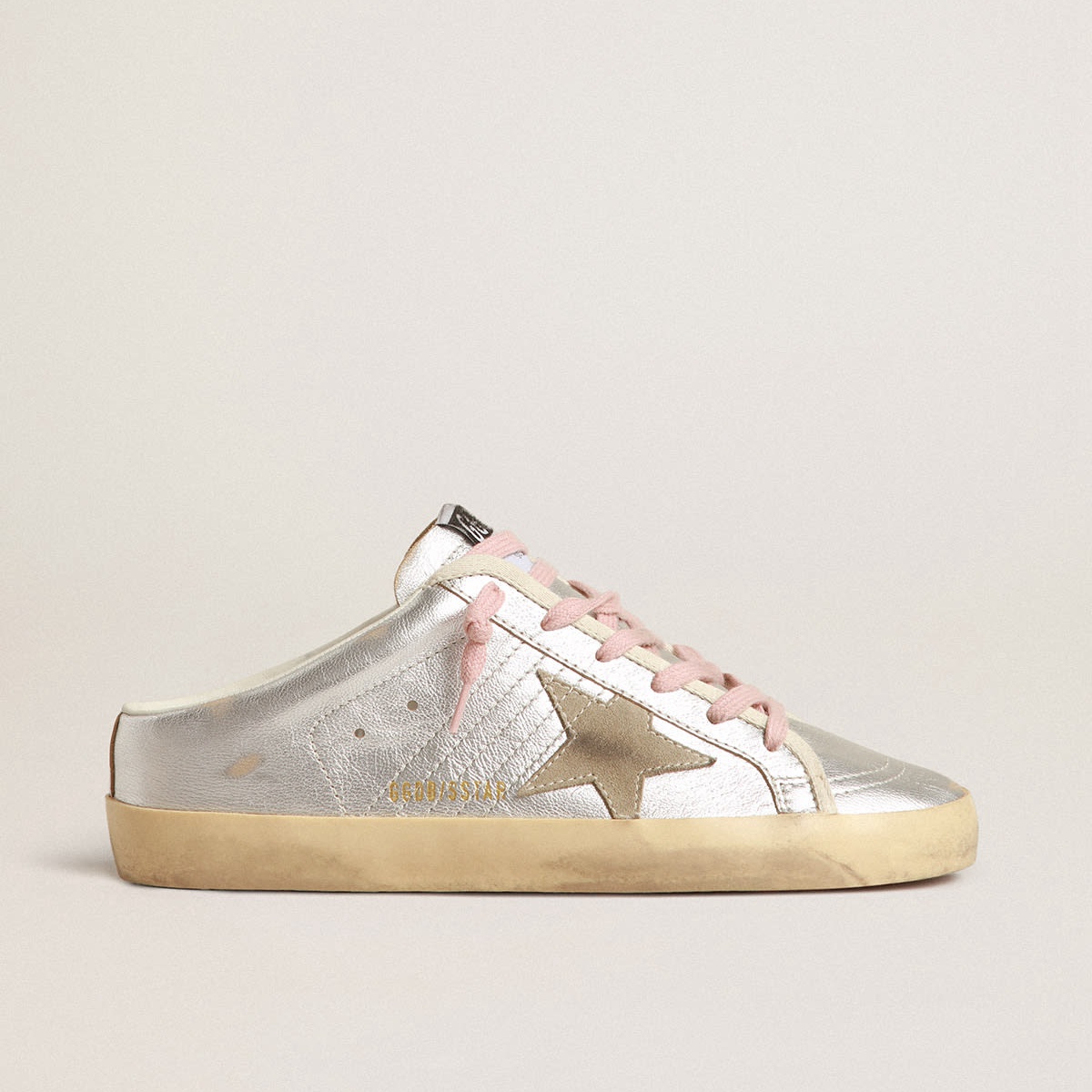 Super-Star-Sabots für Golden Gans in Silbermetallic Leder mit Wildlederstar GWF00110.f004046.70216