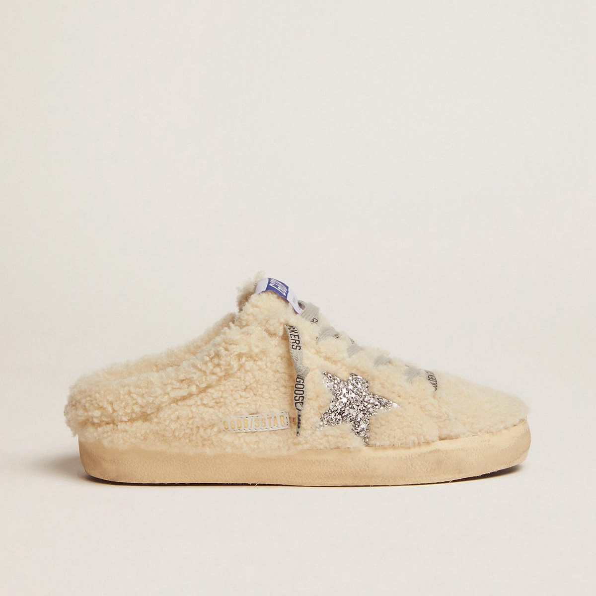 Golden Gans Super-Star-Sabots in White Shearling mit Glitterstar GWF00110.f001987.10757