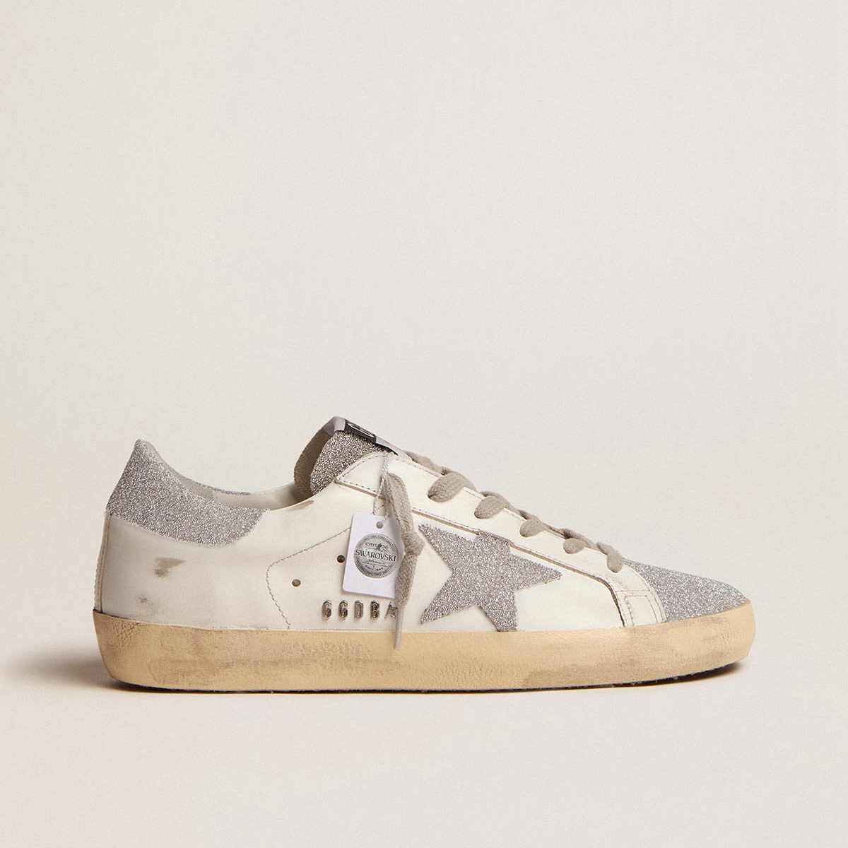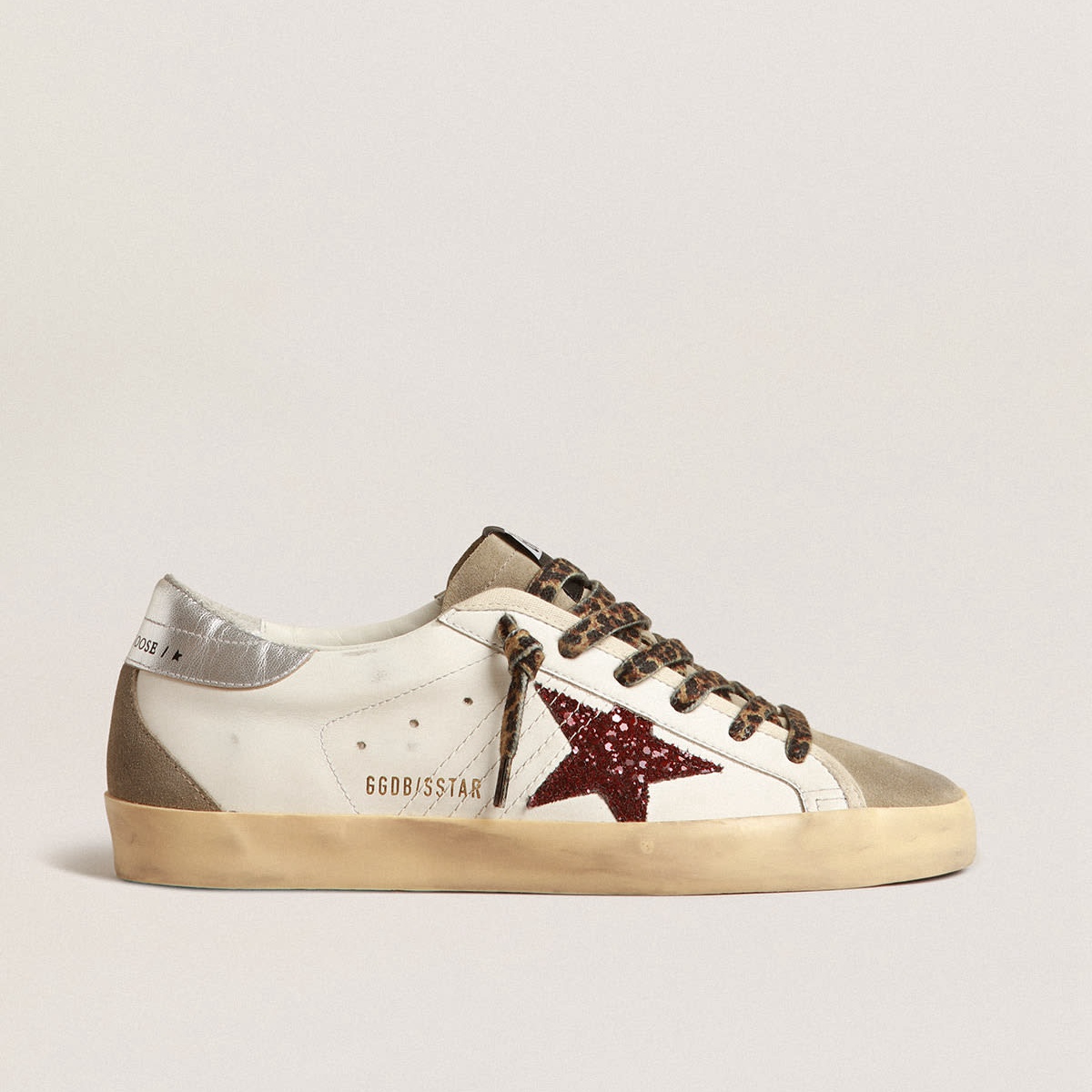 Golden Goose Super-Star mit Burgunderglitterstar und Silberabsatz Tab GWF00102.F004057.11372