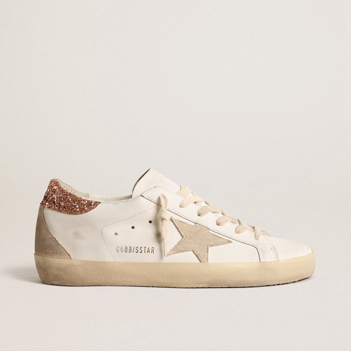 Golden Goose Super-Star mit einem Wildlederstern und Pfirsich-Pink-Glitzer-Fersen-Tab GWF00102.f004489.11471