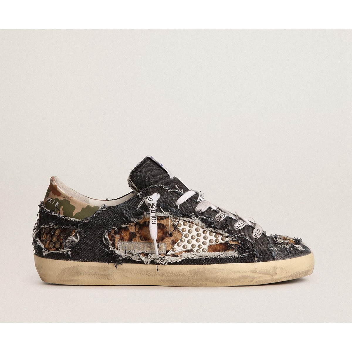 Golden Goose Super-Star Turnschuhe Lab in Denim und Leoparden-Print Pony Skin GWF00103.F002423.81468