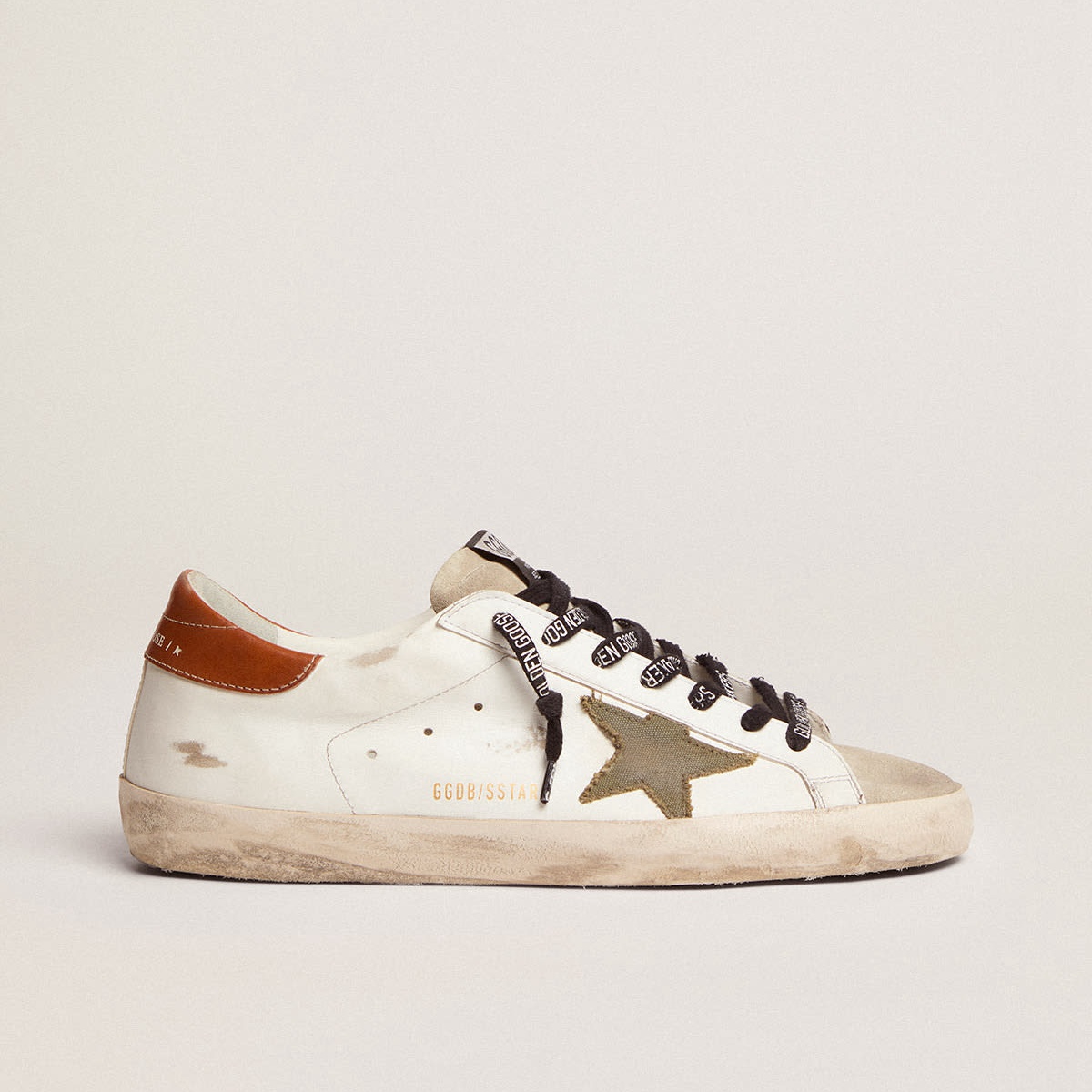 Golden Goose Super-Star Ltd-Turnschuhe mit olivgrünem Leinwand-Star und brauner Lederferse Tab GMF00101.f002709.10947