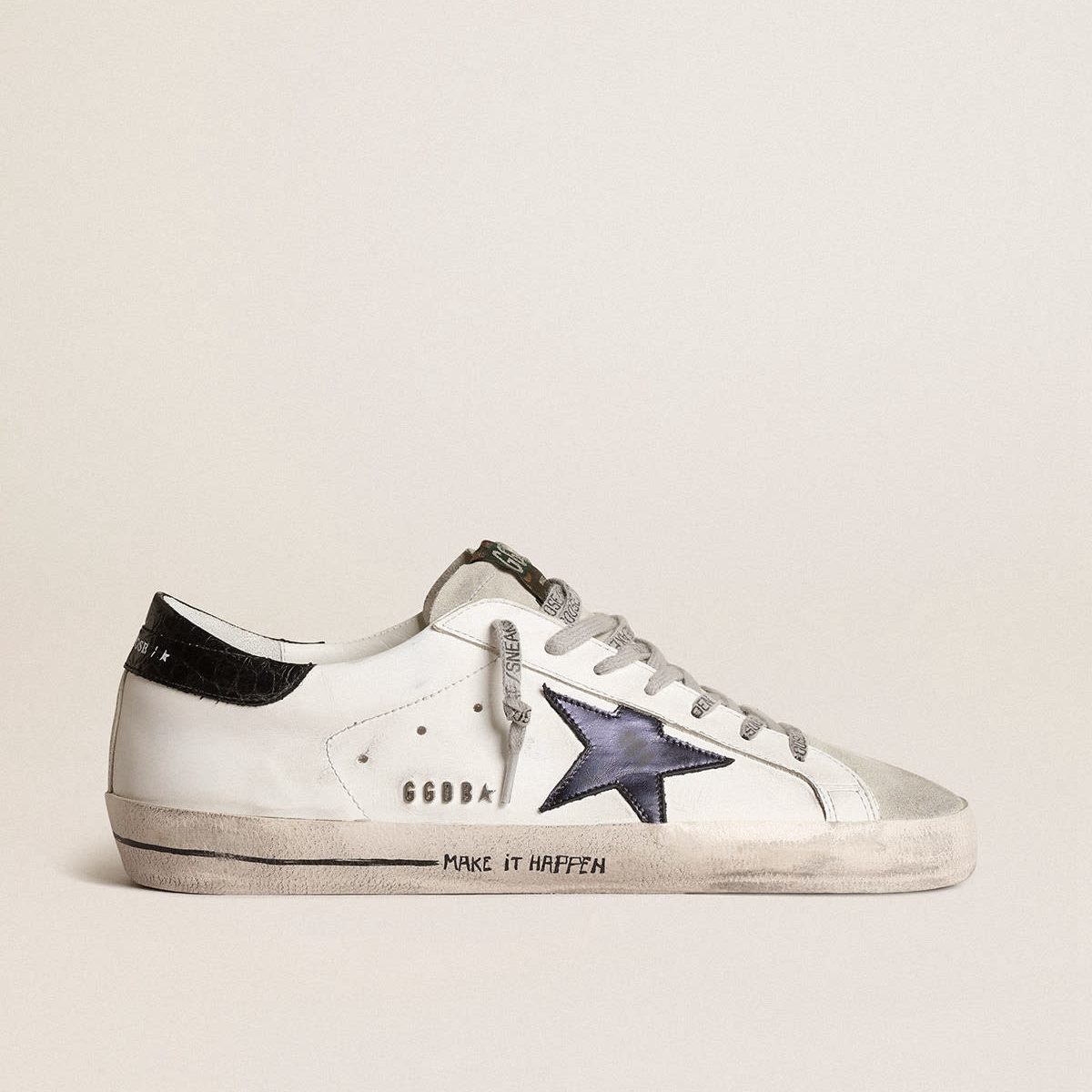 Super-Stern-Turnschuhe mit goldener Gänse mit perforiertem Stern und glänzender Mitternacht mit Mitternachtsblau Leder Ferse Tab GMF00360.f003184.81753