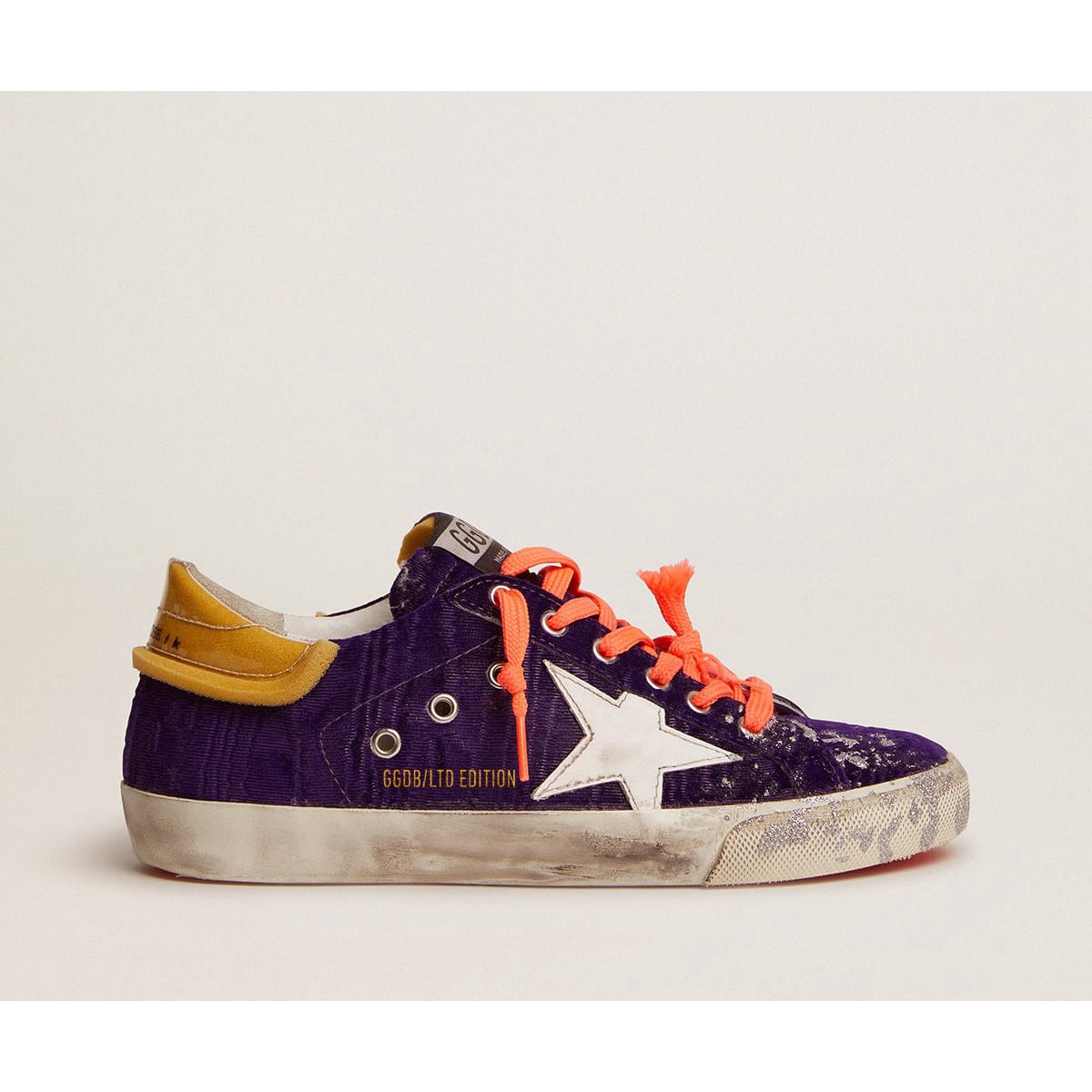 Golden Goose Super-Star Turnschuhe Lab im lila Samt mit PVC-Fersen-Tab GWF00101.f002076.45346