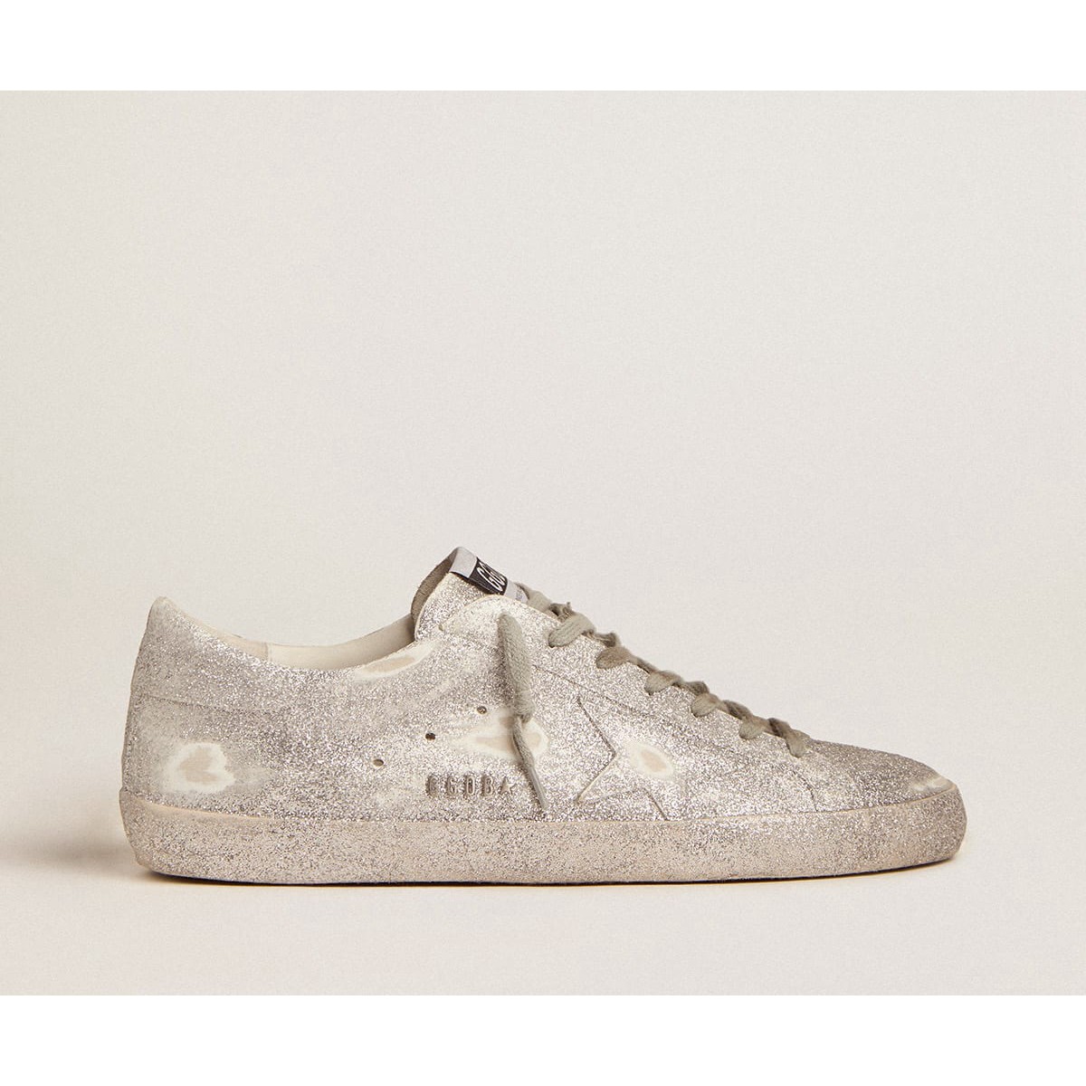 Super-Star-Turnschuhe goldener Gans in Silberleder und Glitzer GMF00101.f002171.70100