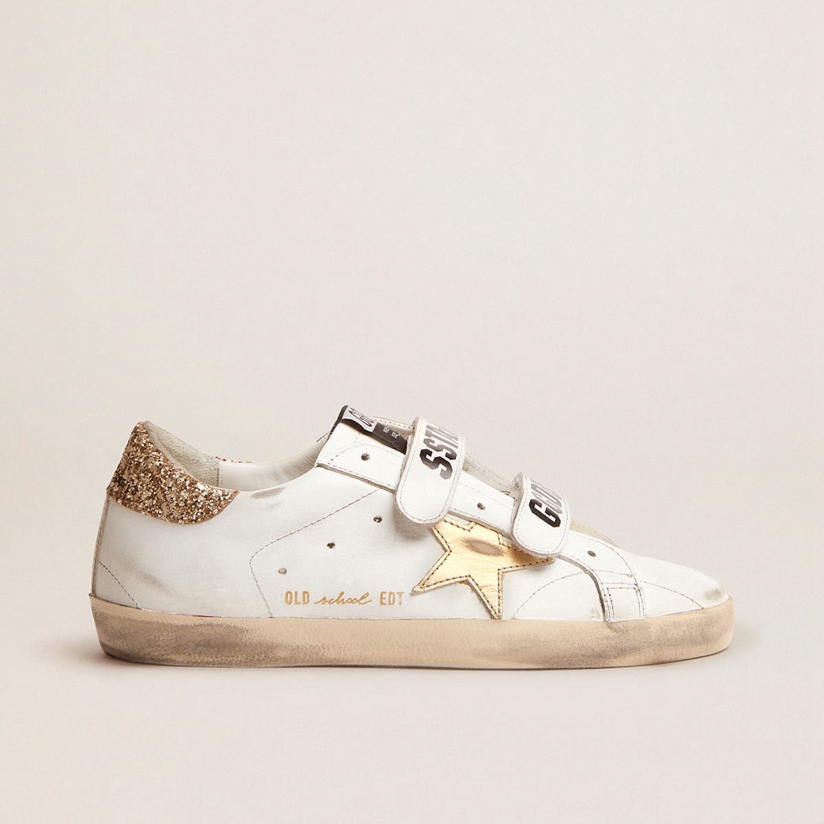 Golden Goose Old School Turnschuhe mit goldenem laminiertem Lederstar GWF00111.f002154.10272