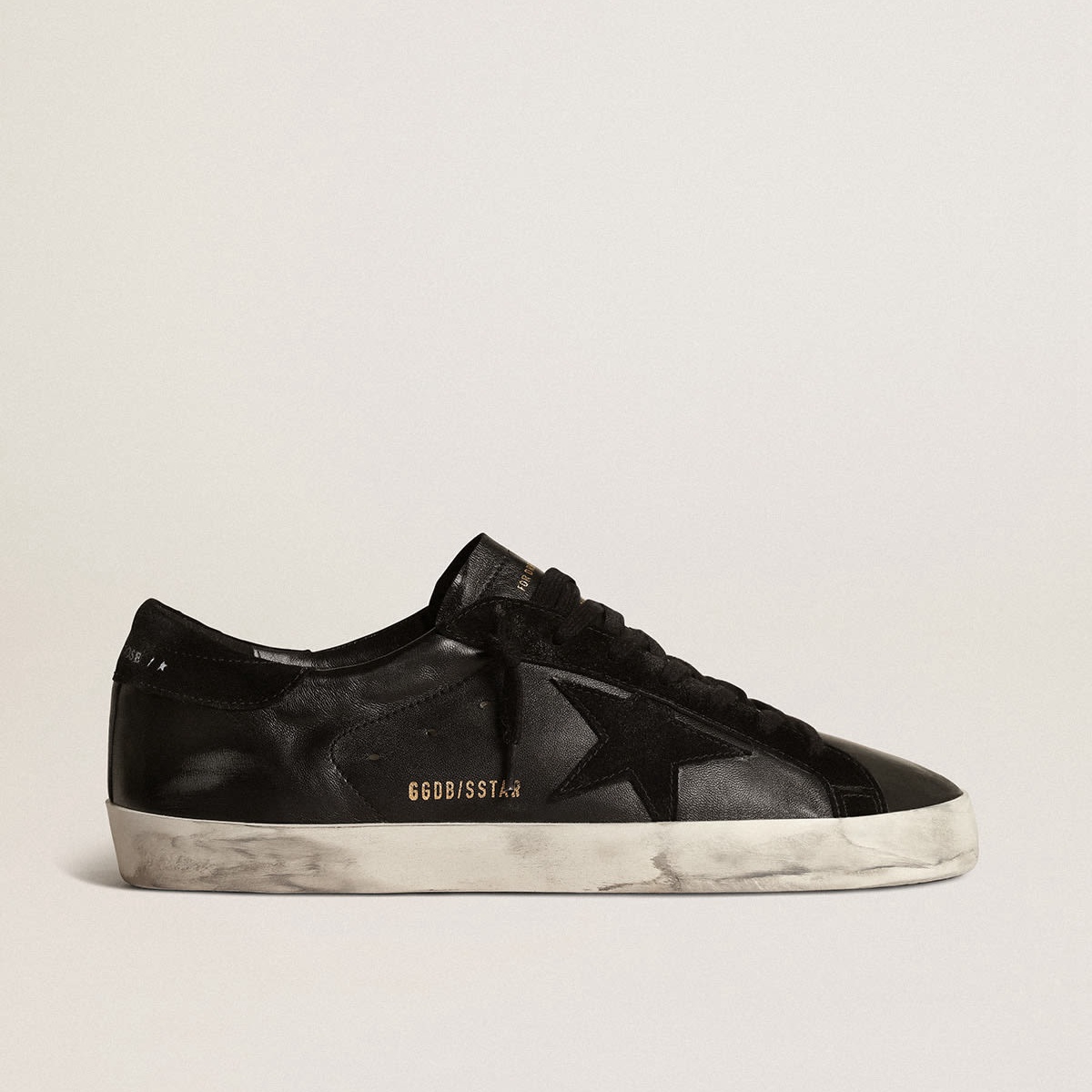 Golden Goose Super-Star in Black Nappa mit schwarzem Wildlederstar und Ferse Tab GMF00101.f003984.90100