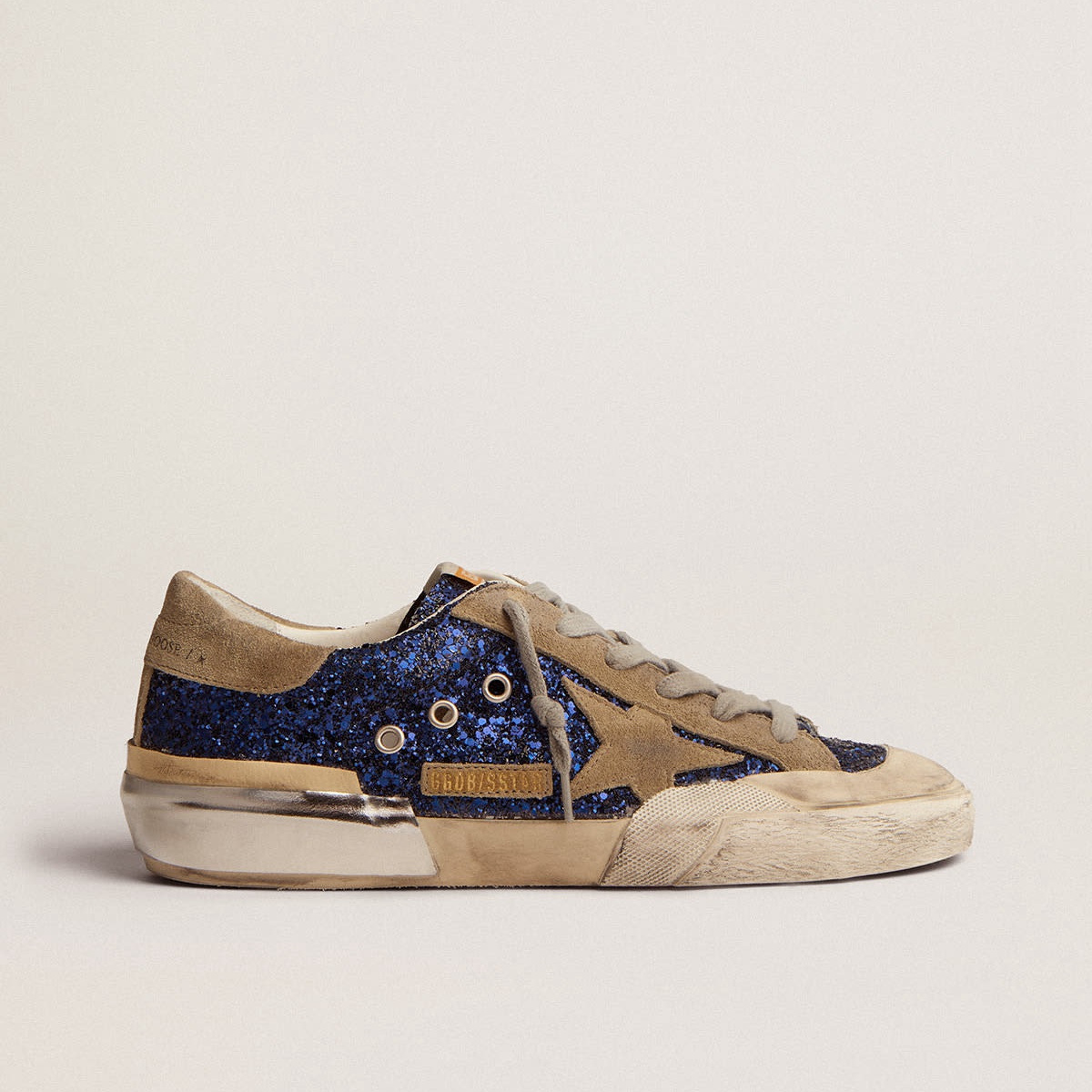 Super-Star-Turnschuhe im Golden Goose im blauen Glitzer mit Dove-Gray Suede-Star GWF00107.f002741.81593