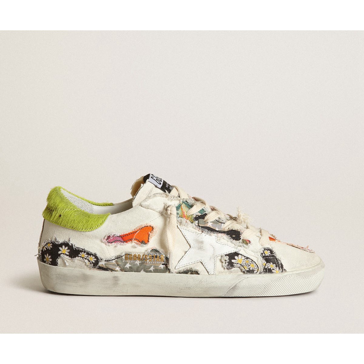 Golden Goose Super-Star Turnschuhe Lab mit mehrfarbigen Drucken und weißen Lederstar GWF00101.f002846.81619
