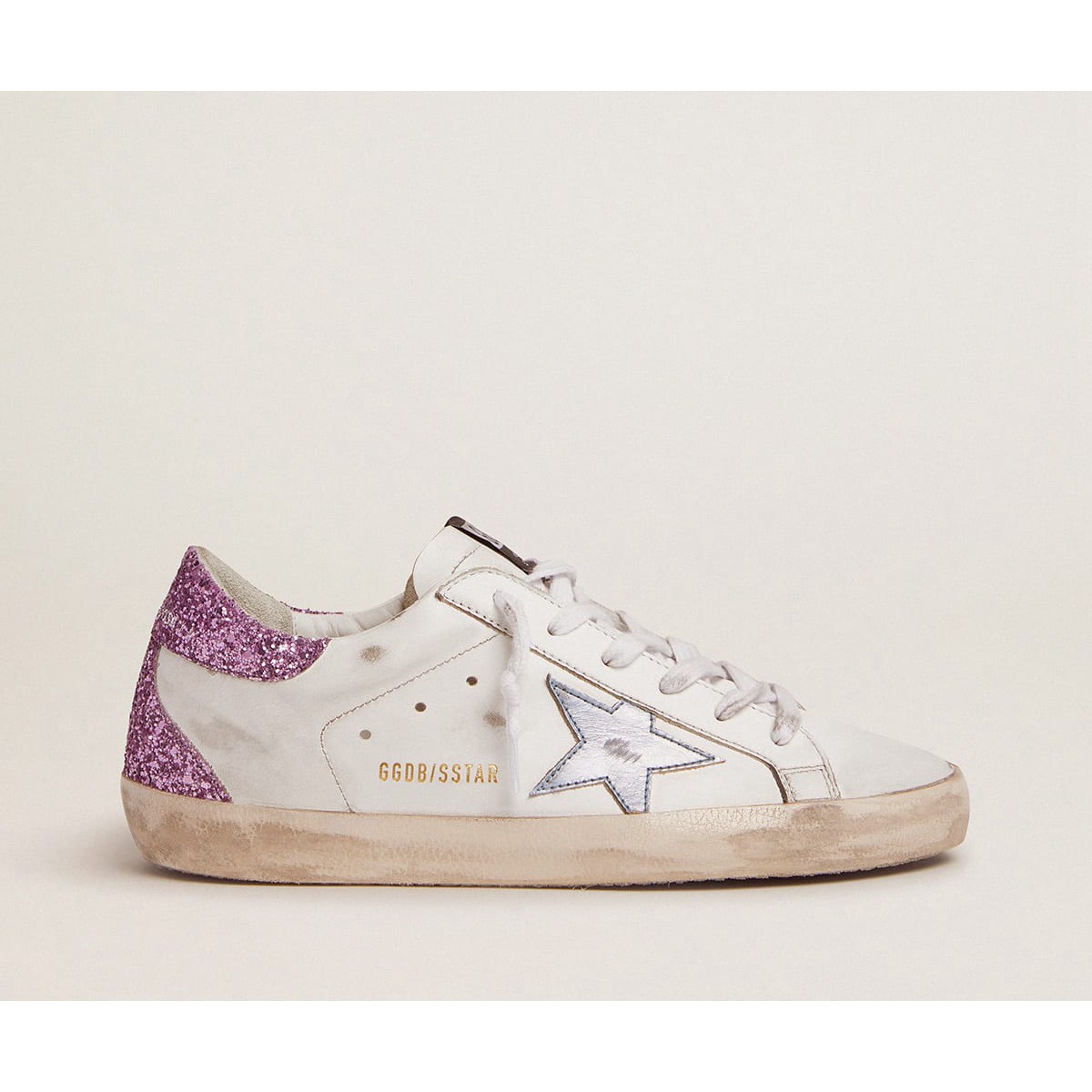 Super-Star-Turnschuhe mit Golden Goose mit Lavendel Glitter Heel Tab und hellblauem Stern GWF00102.F001621.10637