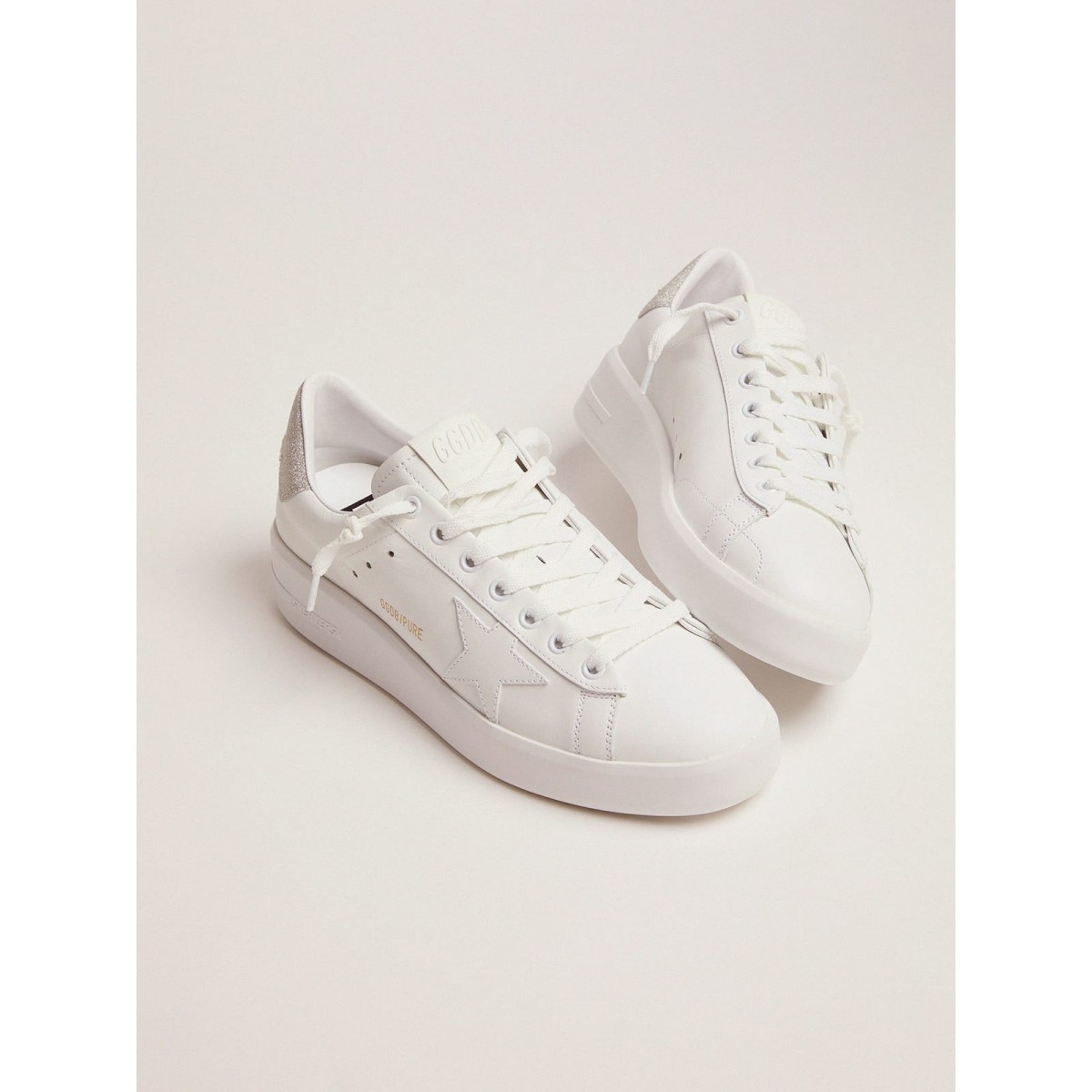 Wenn der Minimalismus der Form der Stärke der Details entspricht: Unsere Purestar-Turnschuhe kombinieren dank ihrer schockabsorbierenden Technologie einen zurückhaltenden Stil mit extremem Komfort. Dieses Modell besteht aus weißem Leder und verfügt>Farbe: Weiß und Champagner