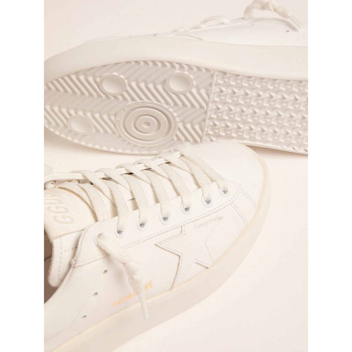 Kunst ist das zugrunde liegende Konzept von Purestar -Turnschuhen. Wir haben mit einem Klassiker herumgespielt und es mit innovativen Materialien und Techniken auf ein neues Niveau gebracht. Dieses Modell, das aus optischem Weiß hergestellt wurde, verfügt über eine goldfarbene Registerkarte Ferse. % Kuhleder