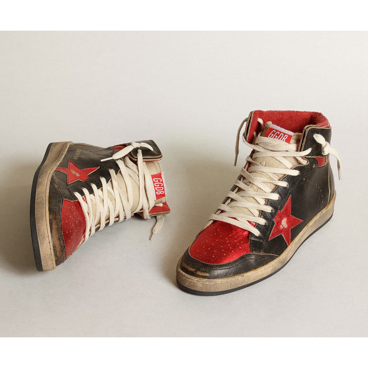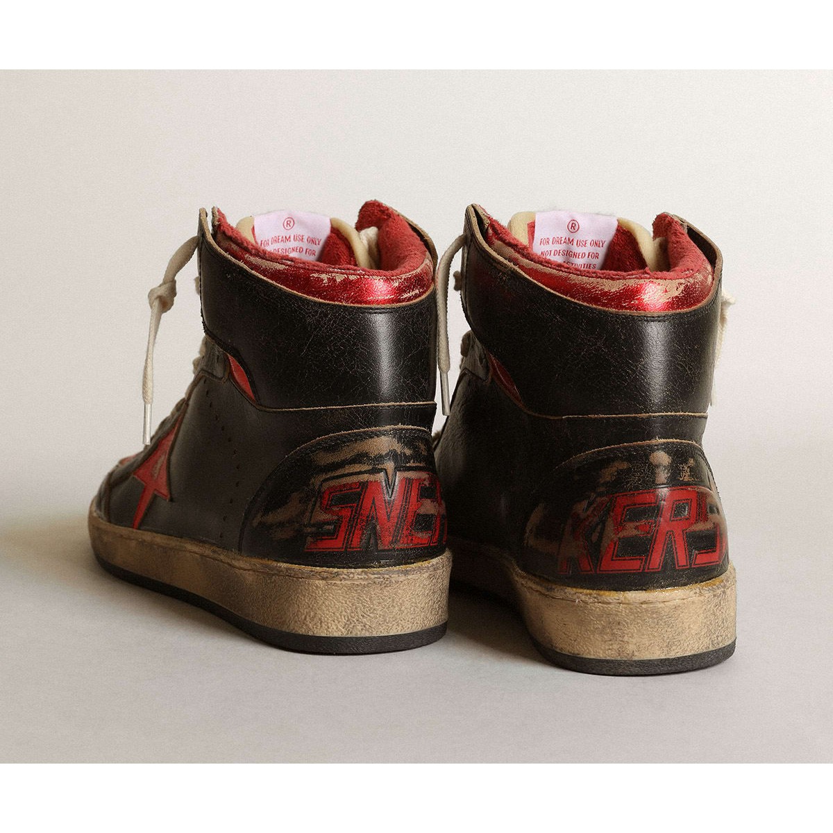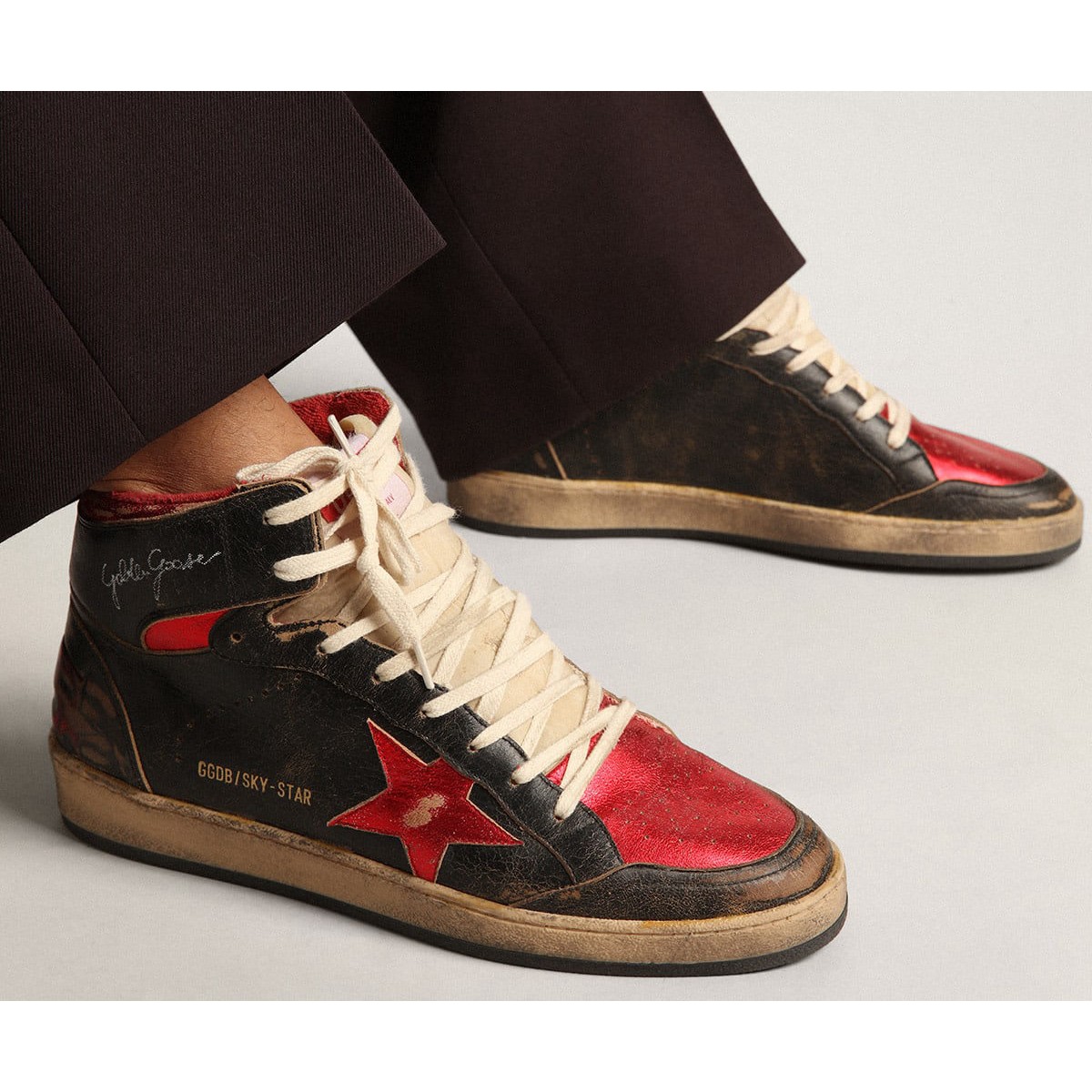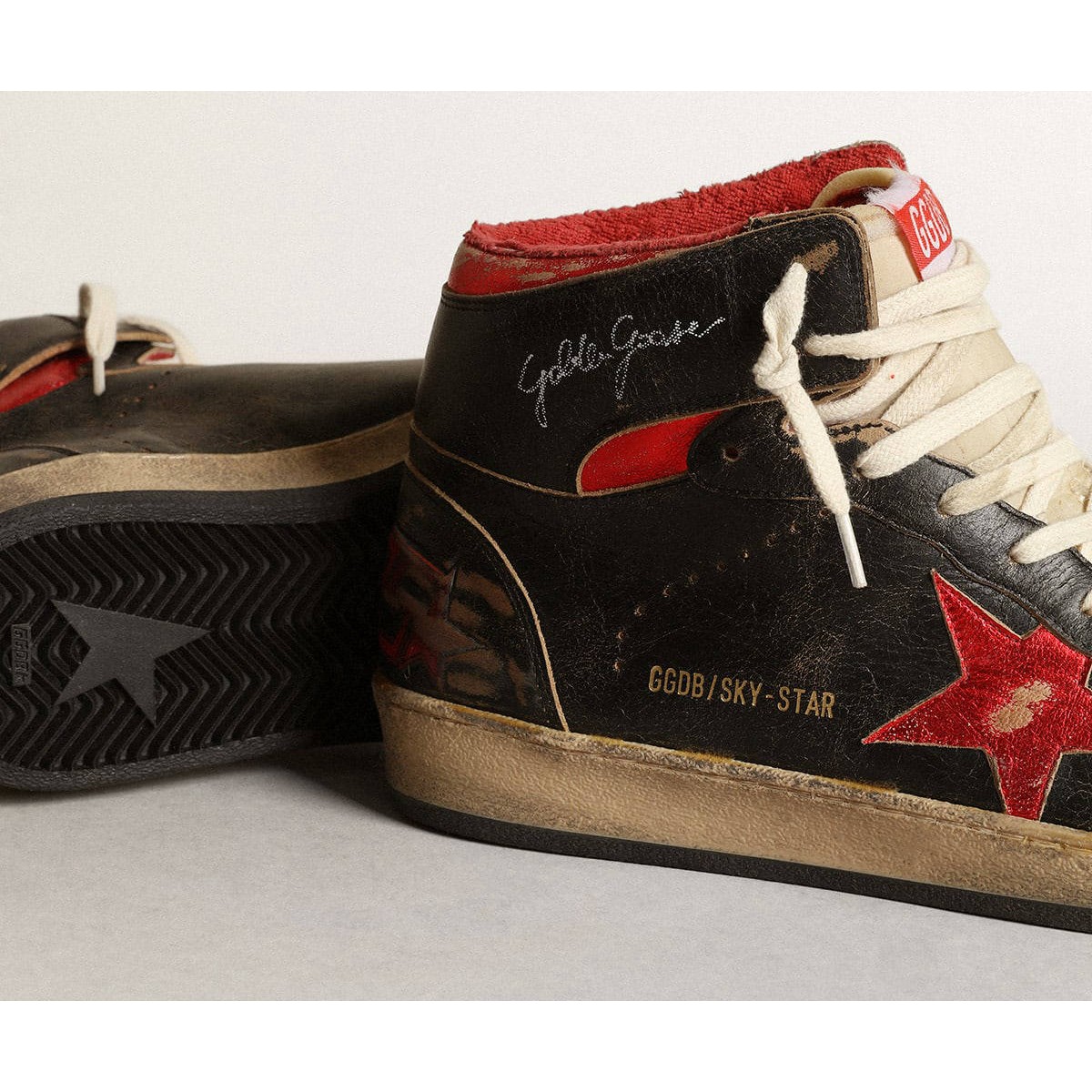 Golden Goose Herren Sky-Star-Sneakers in glänzendem schwarzem Leder mit Red Star GMF00230.F003285.90235