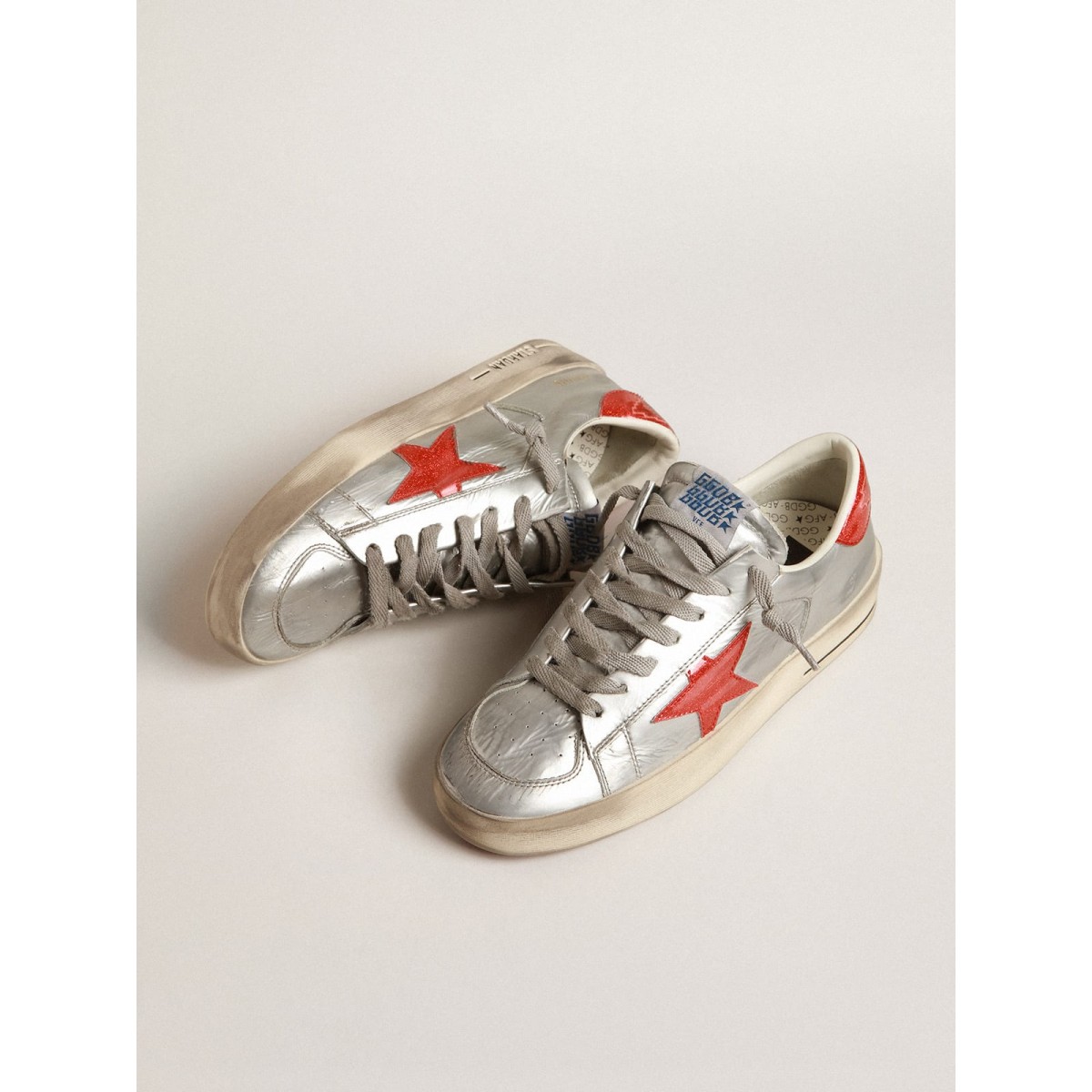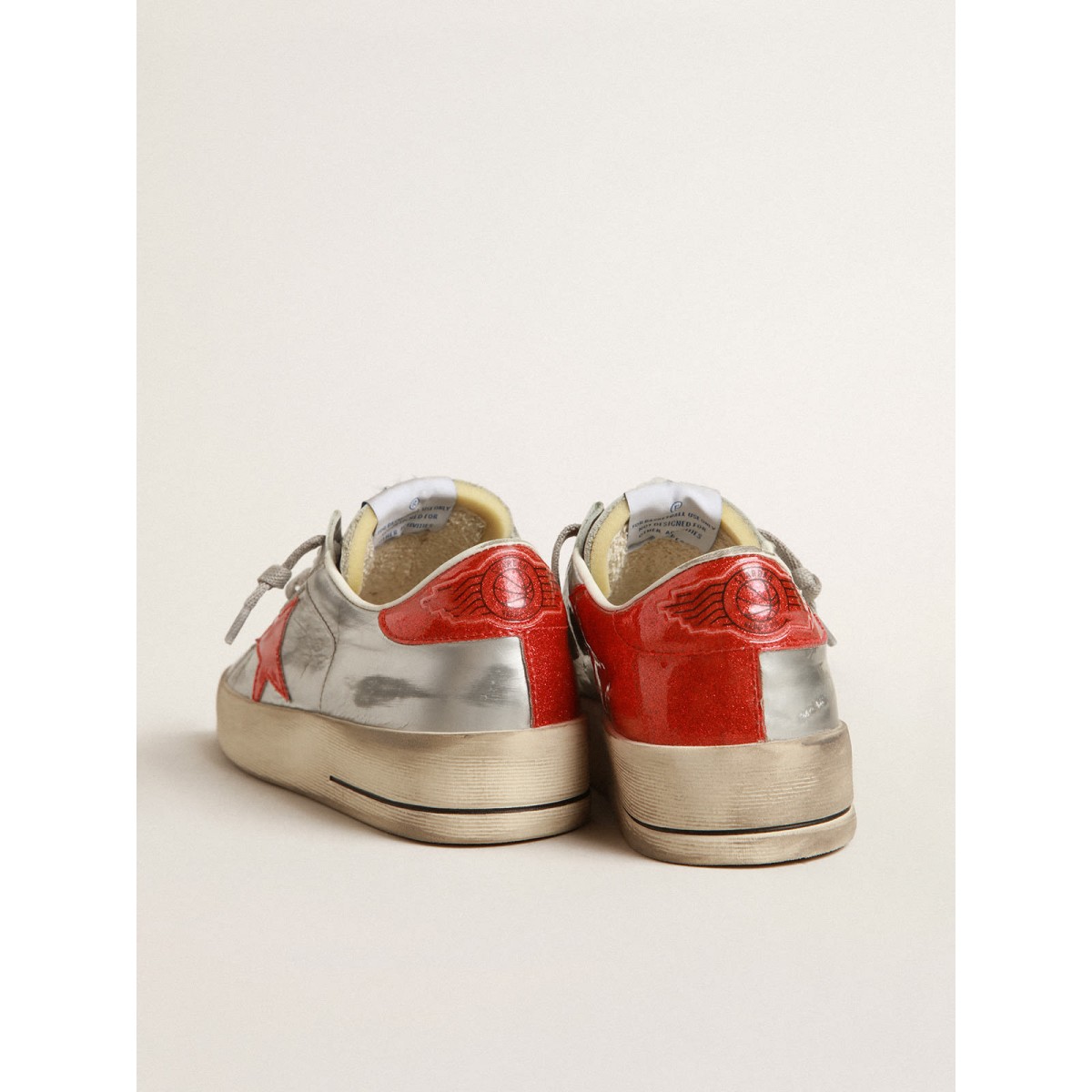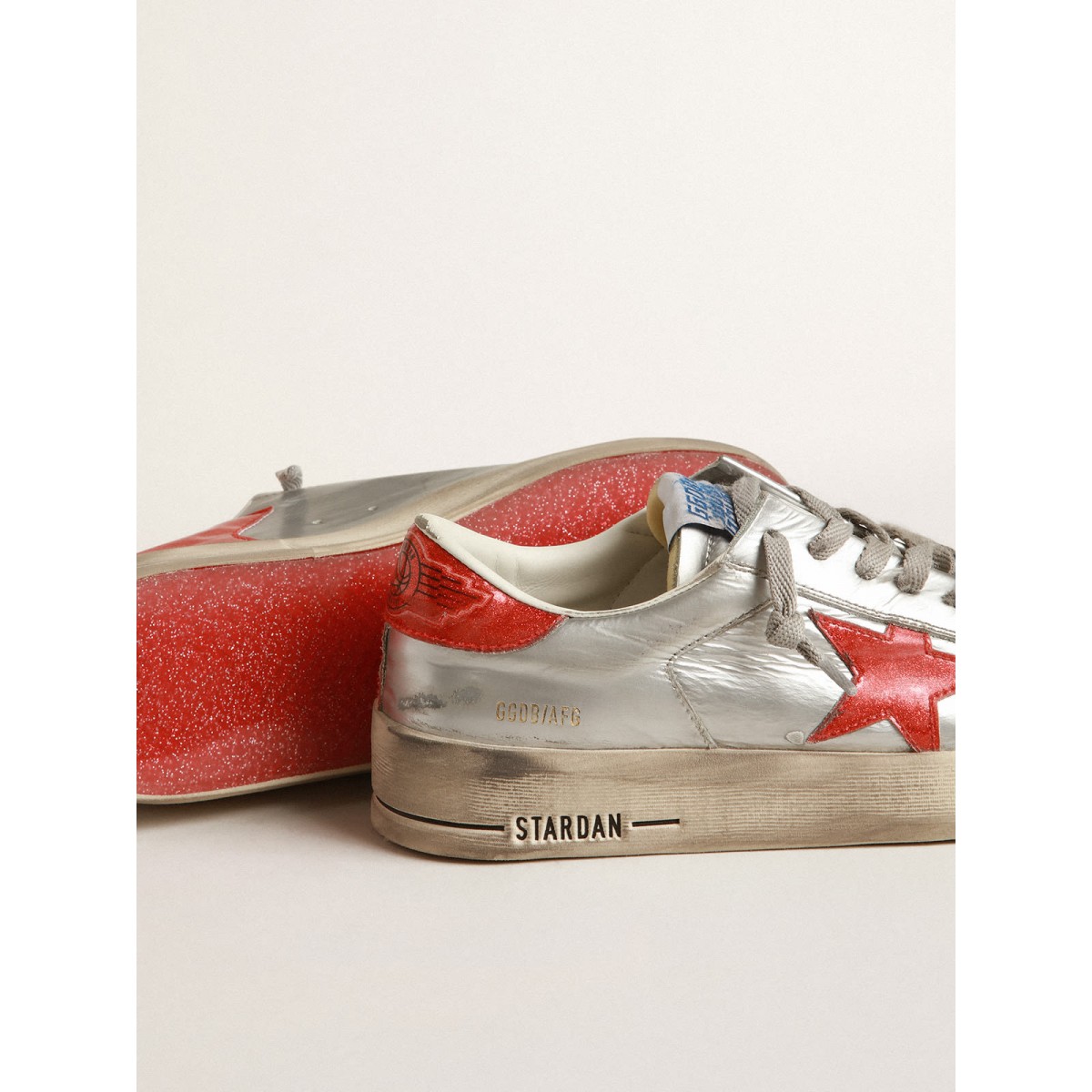 Die glorreichen Neunzighöfe waren in einem Sneaker eingewickelt. Die Stardan -Turnschuhe huldigen den Basketballikonen dieses Jahrzehnts und halten die Gegenwart im Auge. Diese Frauenversion mit silbernem laminiertem Leder-Obermaterial verfügt über Einsätze in rotem Kunststoff-Effekt-Mikro-Glitter wie Stern, Fersenlasche und asymmetrischem Einsatz auf der Rückseite. Die transparente Sohle in roten Kunststoff-Effekt-Mikroglitter und die hellgrauen Schnürsenkel Fügen Sie den Finishing-Touch hinzu.>Oberlaminiertes Leder Upper