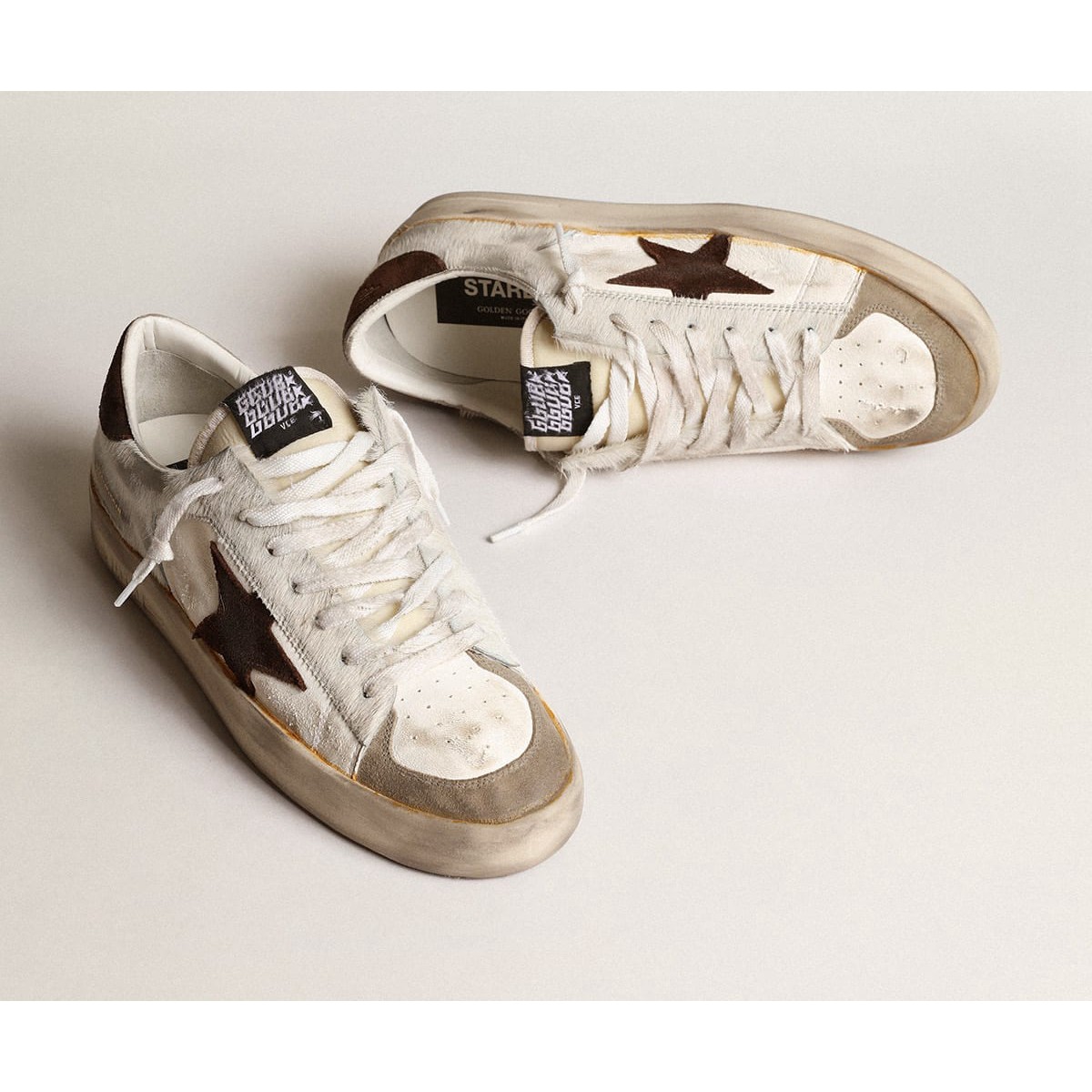 Golden Goose Männerstarte Sneakers in Nappa und Pony Skin mit braunem Wildleder Star GMF00128.f004007.81999