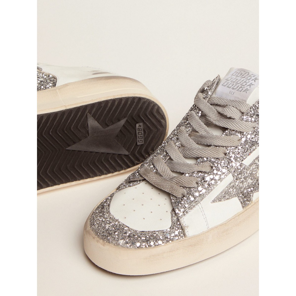 Golden Gans Stardan Turnschuhe mit Silberglitter GWF00128.f002185.80185