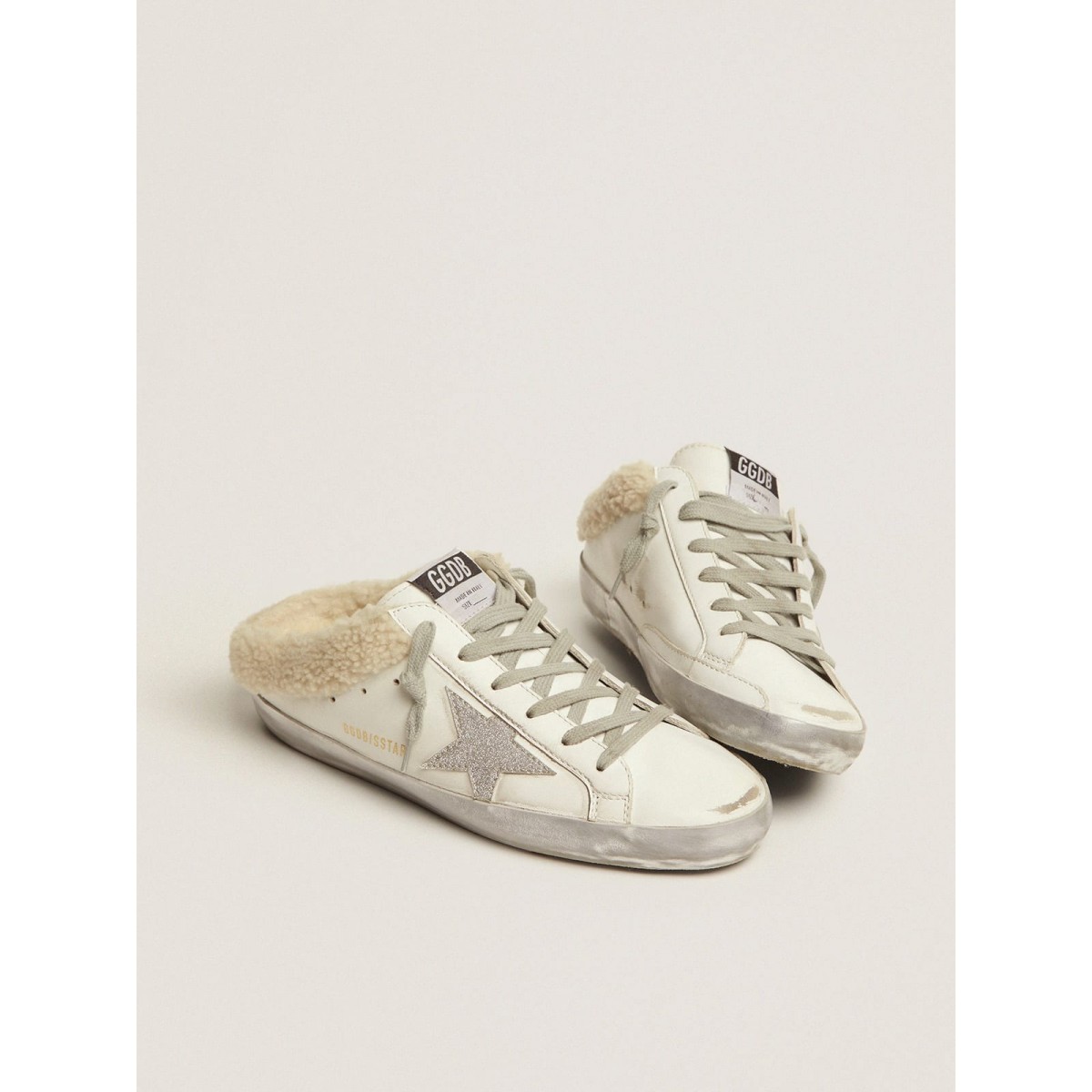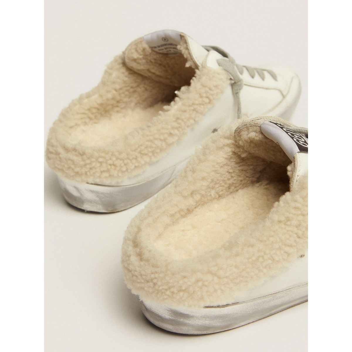 Golden Gans Super-Star-Sabots in weißem Leder mit Shearling-Futter GWF00110.f001724.10224