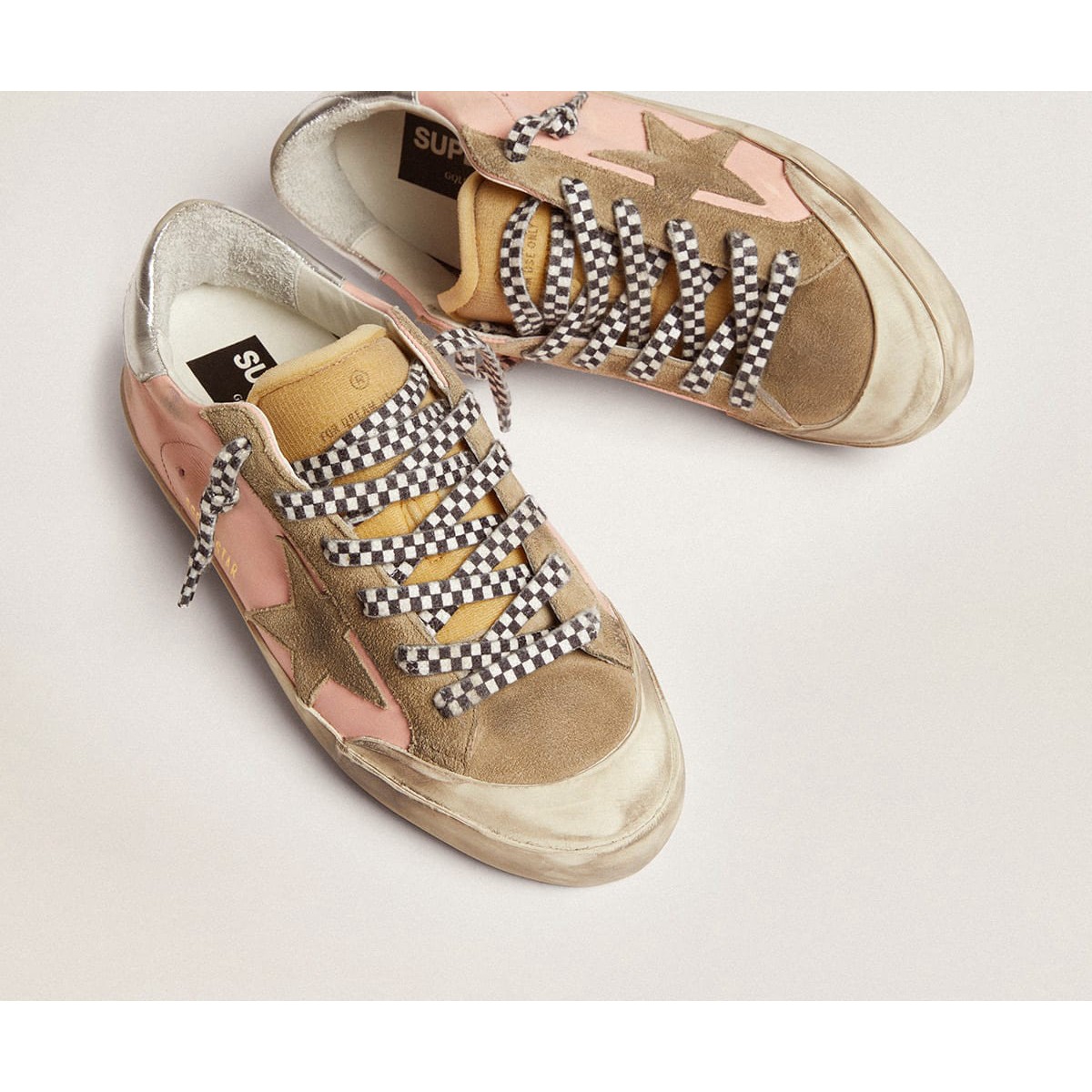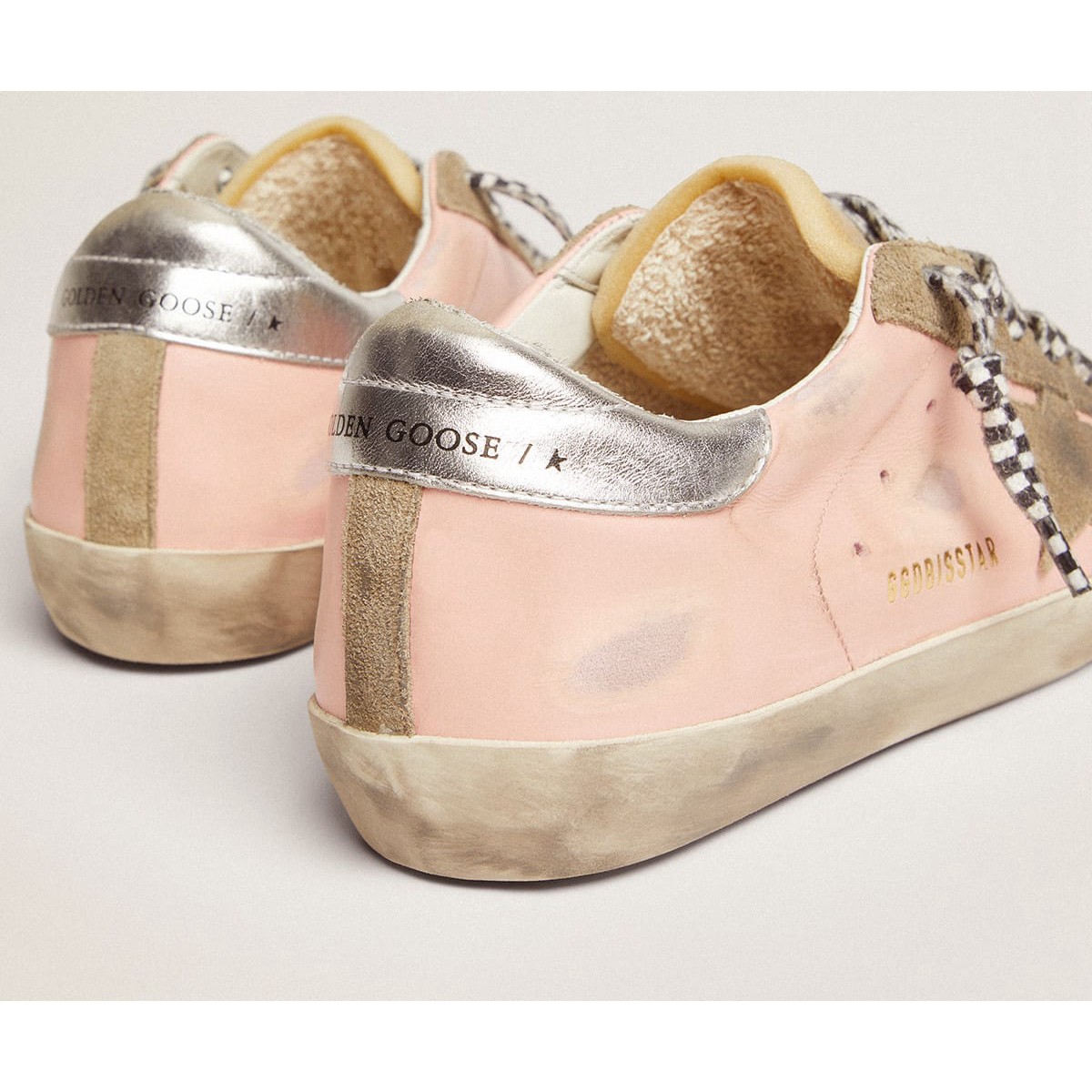 Super-Star-Sneaker für Golden Goose Frauen in rosa Leder- und Silberabsatz-Tab GWF00107.f002701.81574