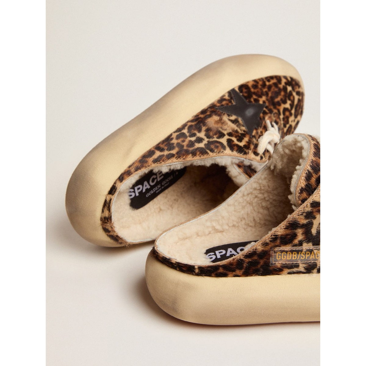 Ihr neuer Moment, sich von der Realität zu lösen und wie nie zuvor zu fliegen. In dieses unglaubliche Gefühl der Leichtigkeit von der ersten Sekunde eingewickelt, um Platz für die kühnste Version von sich selbst zu schaffen. Schließlich freilegen Sie Ihren Stil frei und leeren Sie Ihren Geist. Die Space-Star-Schuhe verfügen über die extra Kissensohle und die mit Speicherschaum gepolsterte Innensohle und garantieren bei unvergleichlichem Komfort ab dem ersten Schritt. In tierischer Pony-Haut fällt diese Sabot-Version aufgrund ihres applikativen schwarzen Ledersterns und der weichen Shearling-Futter aus.>