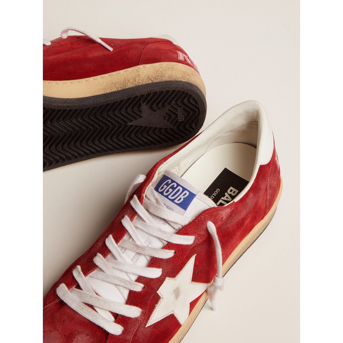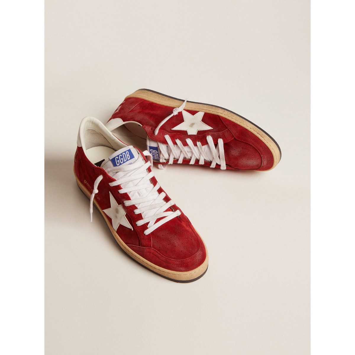 Von den achtziger Jahren träumen. Unsere Ballstar -Sneakers haben eine amerikanische College -Atmosphäre zwischen einem Reifenschuss und einer Skateboardfahrt. Dieses Herrenmodell im dunkelroten Wildleder verfügt über einen weißen Lederstern und Fersenstar. Und die weißen Schnürsenkel fügen den letzten Schliff hinzu: Schöne Dinge, die niemals aus der Mode gehen. Oberes Wildleder